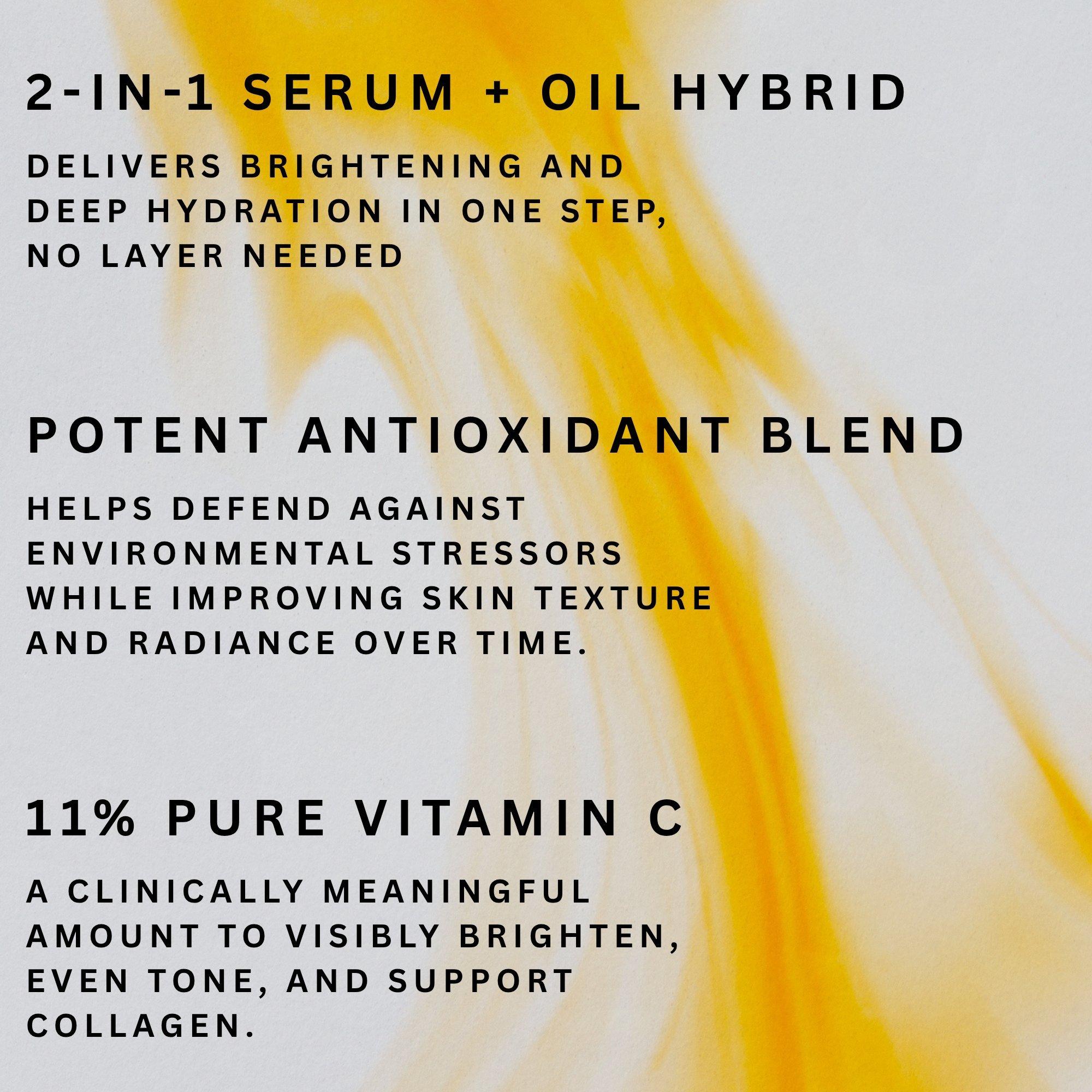• Vitamin C (Ascorbic Acid): Brightening, anti-aging, evens out skin tone