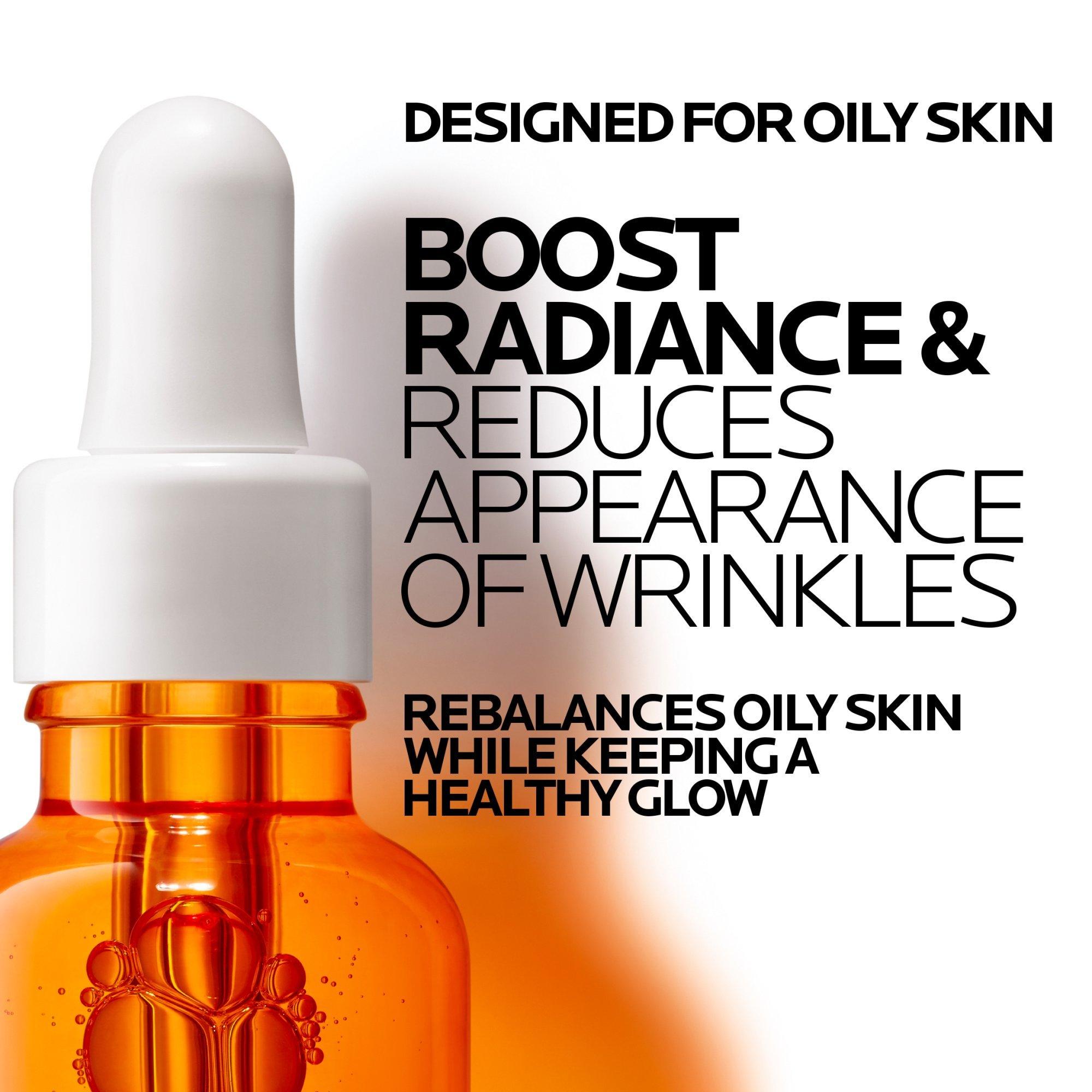 Discover La Roche Posay's Vitamin C12 Oil Control Face Serum with 12% Pure Vitamin C, designed to boost radiance and reduce the appearance of wrinkles. Liquid, fast-absorbing texture specifically adapted for oily skin, ensuring it rebalances your skin for oil control and a healthy glow.