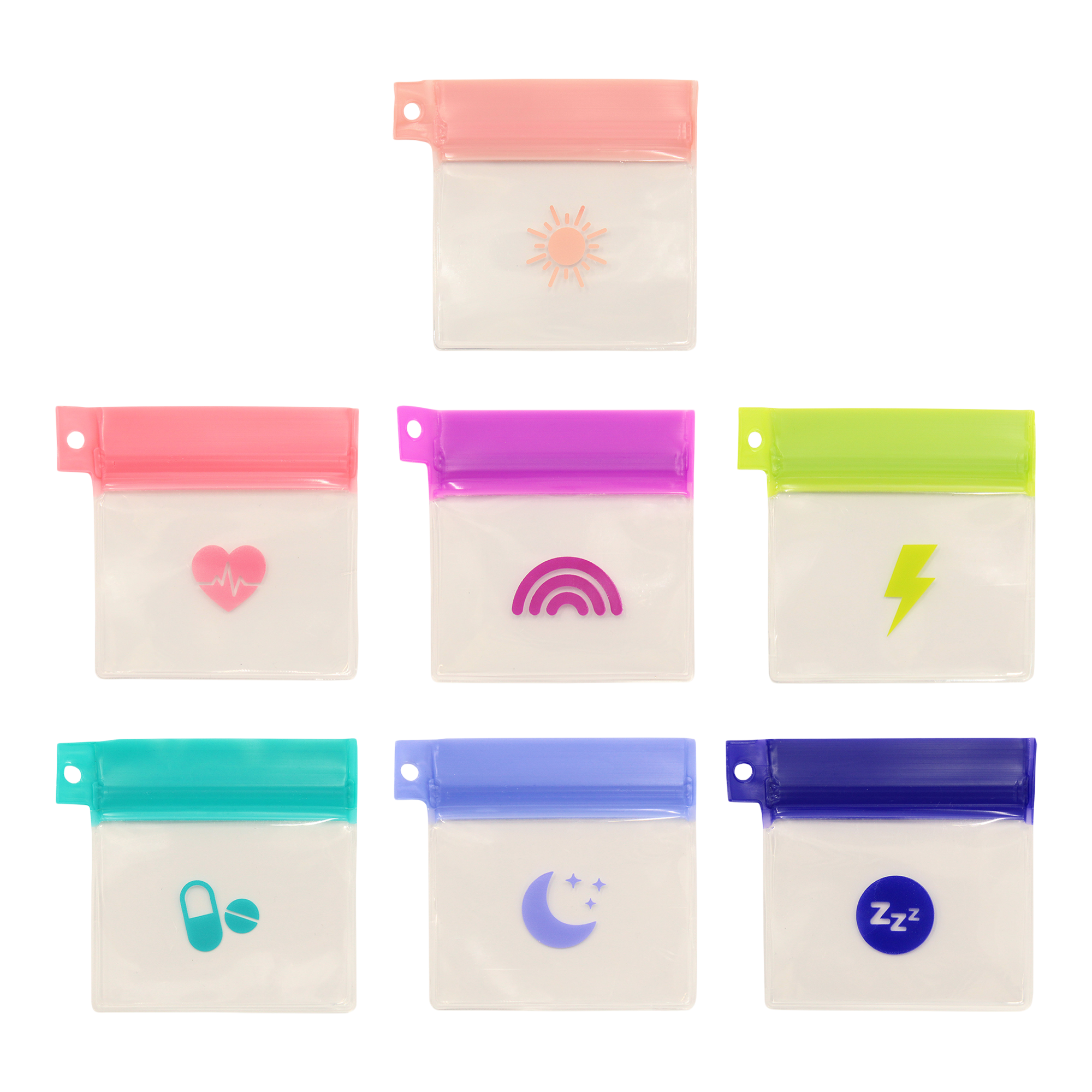 Keep your vitamins, supplements & pills organized & within reach with this set of 7 clear MYTAGALONGS Vitamin Organizing Pouches. A great way to stay on top of your health & wellness.
