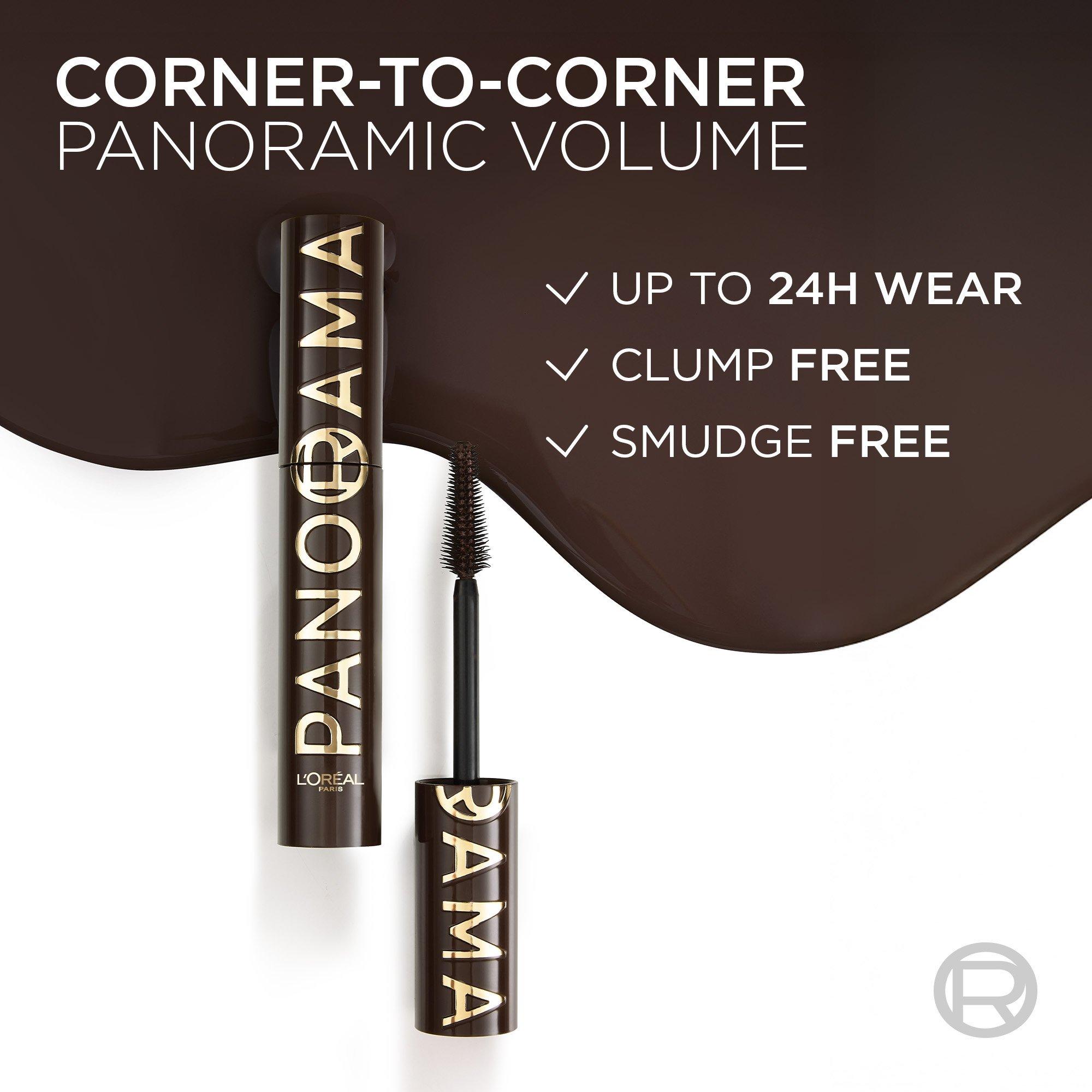 L'Oréal Paris' Voluminous Panorama Washable Mascara is a volumizing mascara that is clump, flake, and smudge-resistant, for up to 24hrs wear. The multi-level bristle brush easily grabs each lash, inner to outer corner for even application from root to tip.