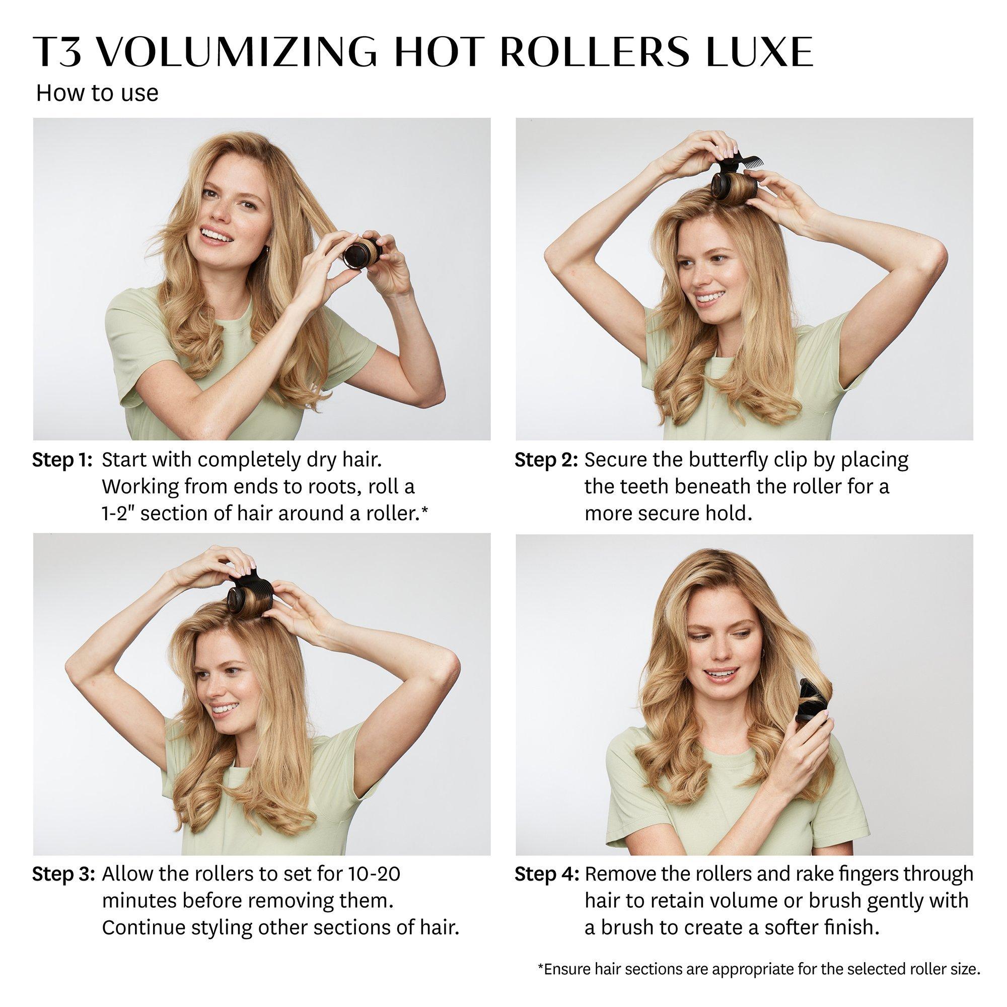 Powered by innovative T3 HeatCore Technology, the Volumizing Hot Rollers Luxe Set features two heat settings, allowing each roller to deliver optimum heat transfer for lasting voluminous results.