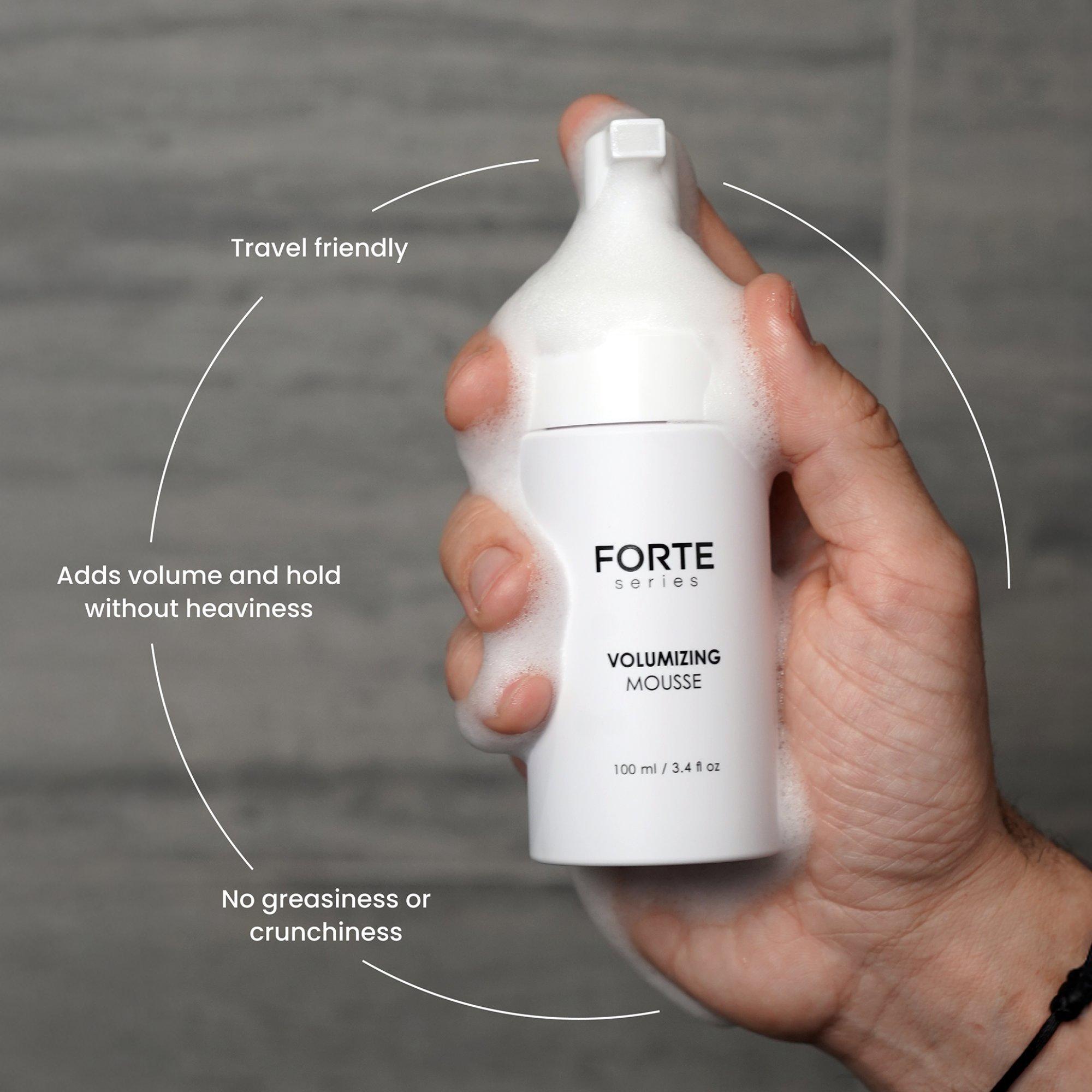 • Designed to give your hair an instant lift, the Forte Series Volumizing Mousse adds volume, thickness, and bounce without weighing your hair down.