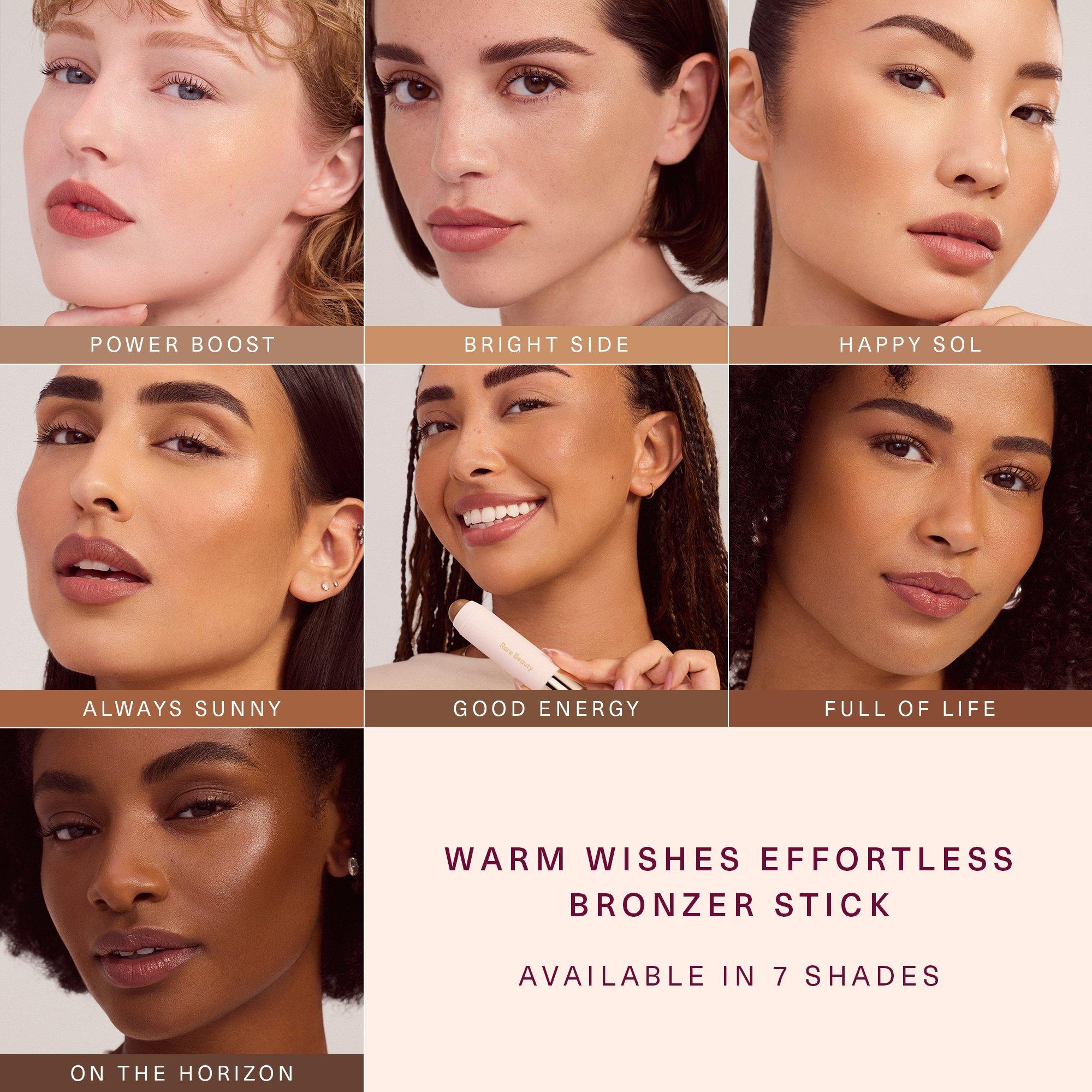 Rare Beauty Warm Wishes Effortless Bronzer Stick is a breakthrough bronzing stick that creates an instant sun-kissed glow and blends seamlessly for smooth, second-skin finish—just swipe, blend, and go!