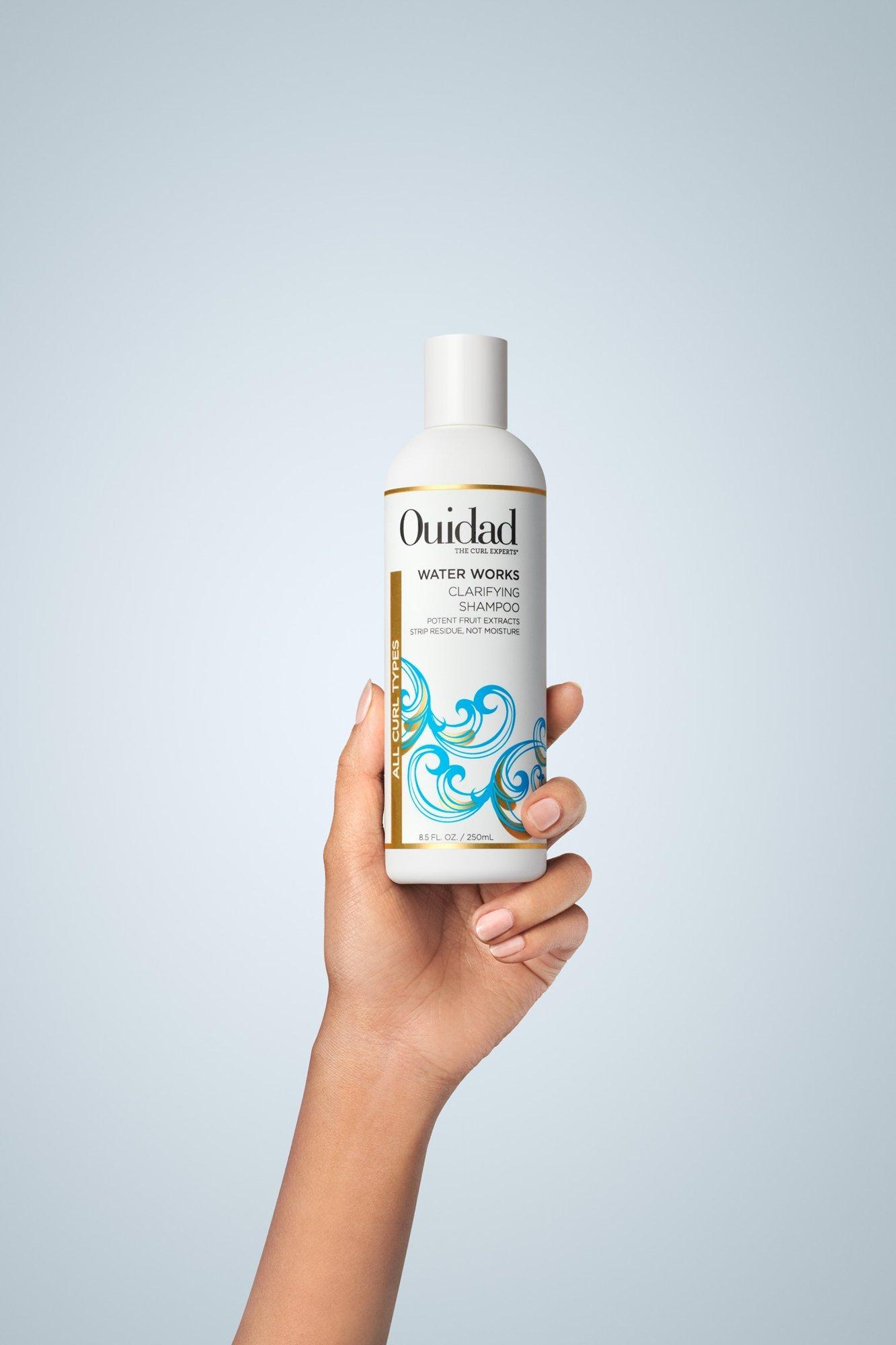 Ouidad's Water Works Clarifying Shampoo effectively removes dulling residues, hard water deposits and chlorine; non-stripping citrus extracts break down and remove build-up without depleting curls' essential moisture.