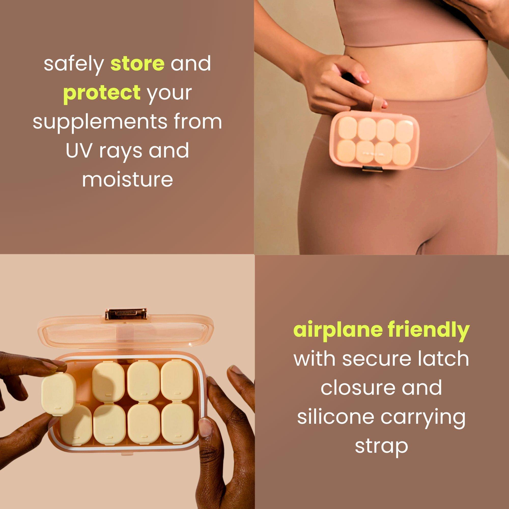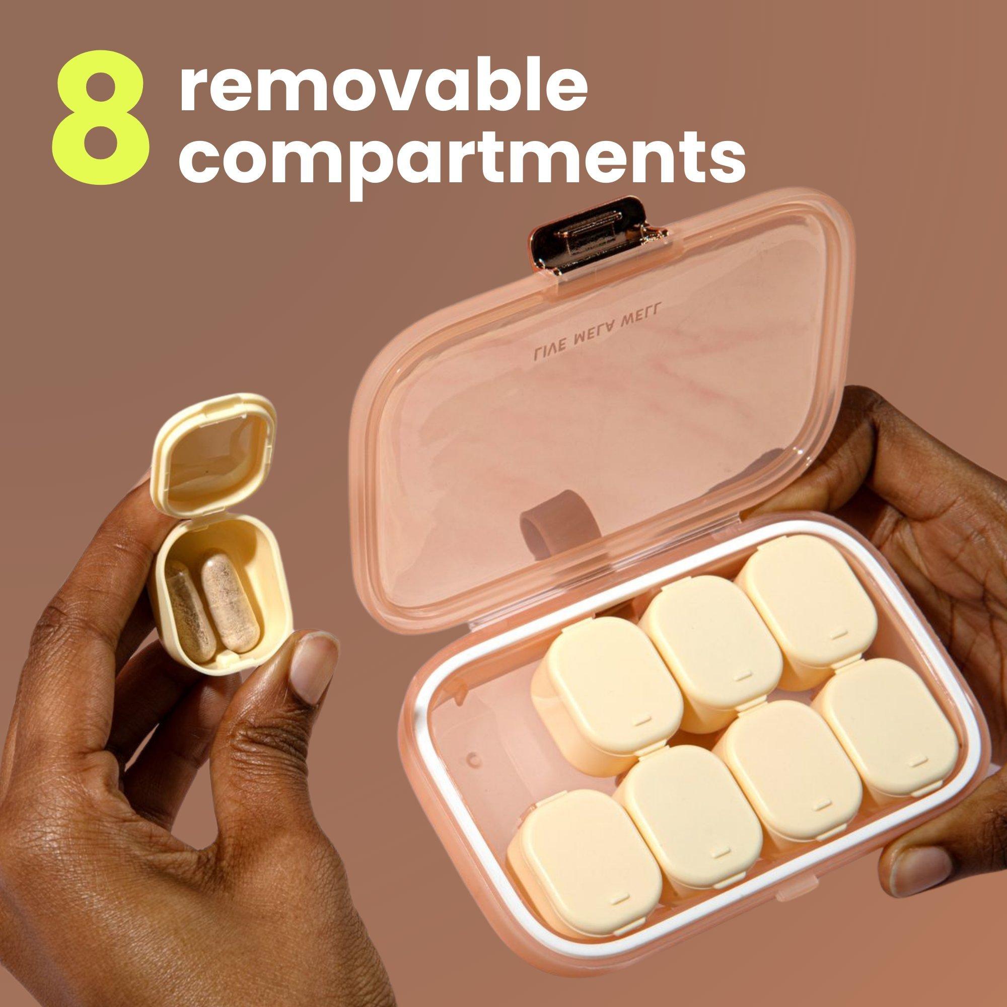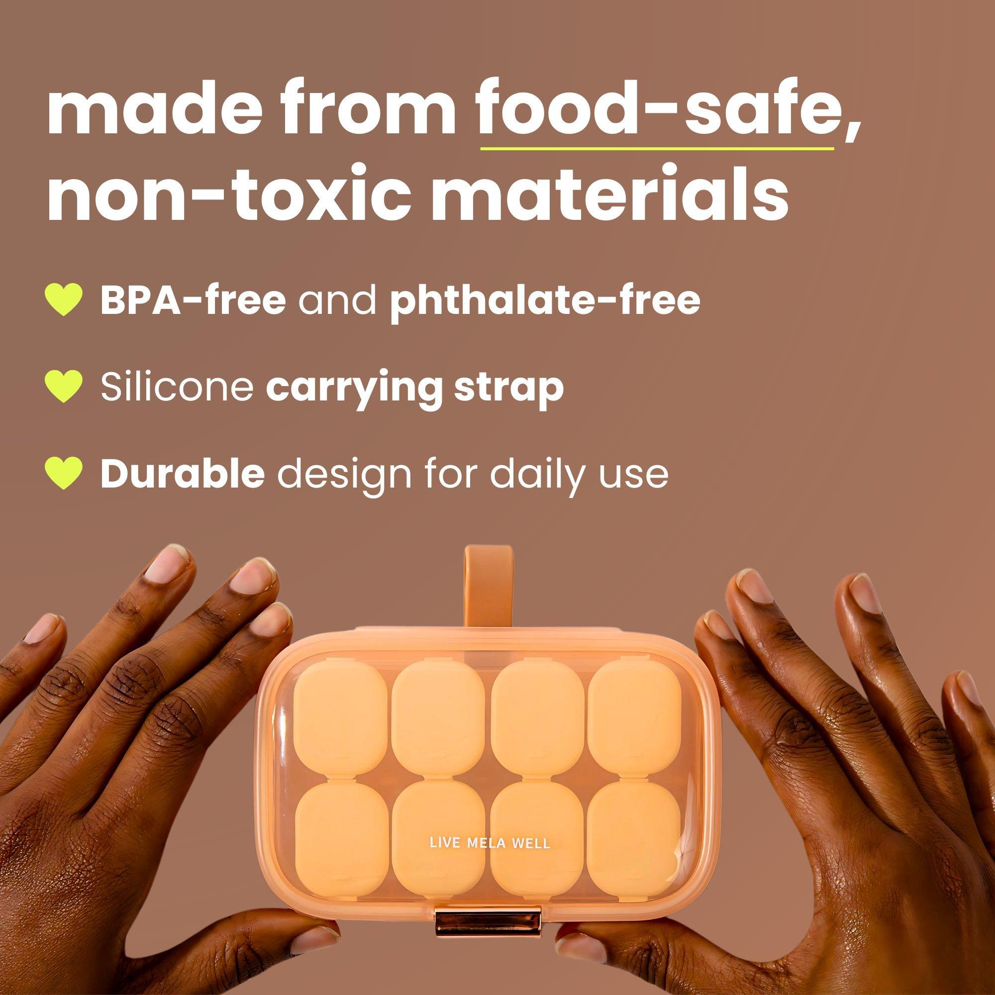 Organize your vitamins and pills with Mela’s Weekly Vitamin Case. Eight compartments and a compact, food-safe design make it easy to store and carry your supplements at home or on the go.