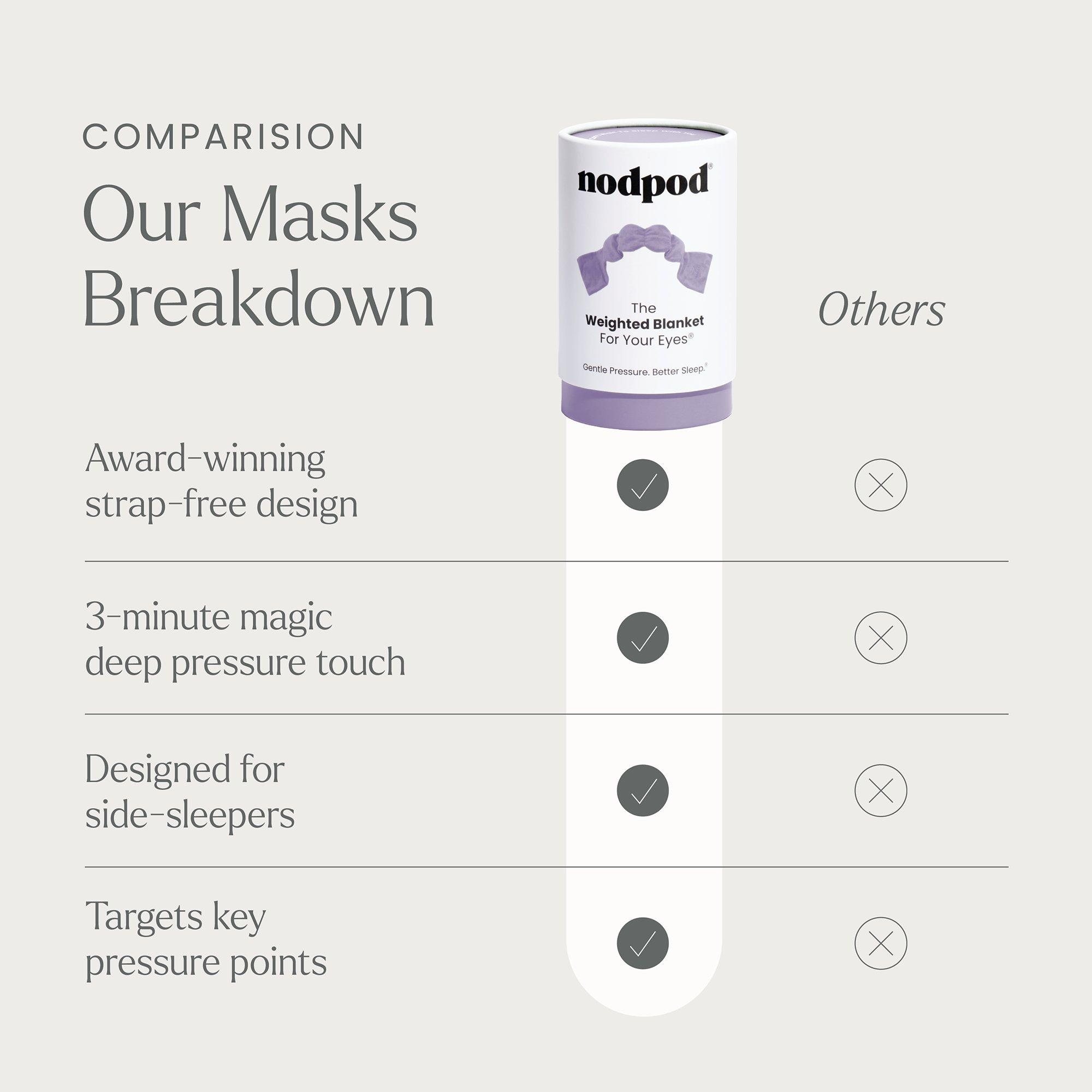 Nodpod's Weighted Blanket For Your Eyes. All the stress-relieving benefits of a weighted blanket in a strap-free weighted sleep mask that you can wear in any position.