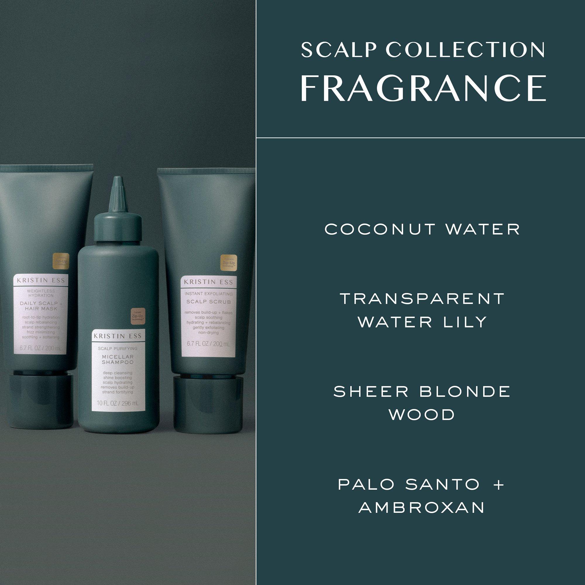 The Weightless Hydration Scalp + Hair Mask from Kristin Ess Hair instantly calms and soothes irritation, minimizes frizz and strengthens strands.