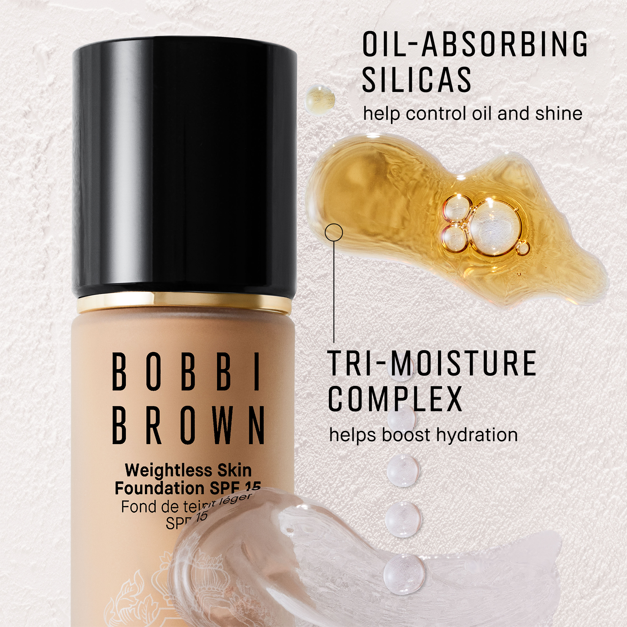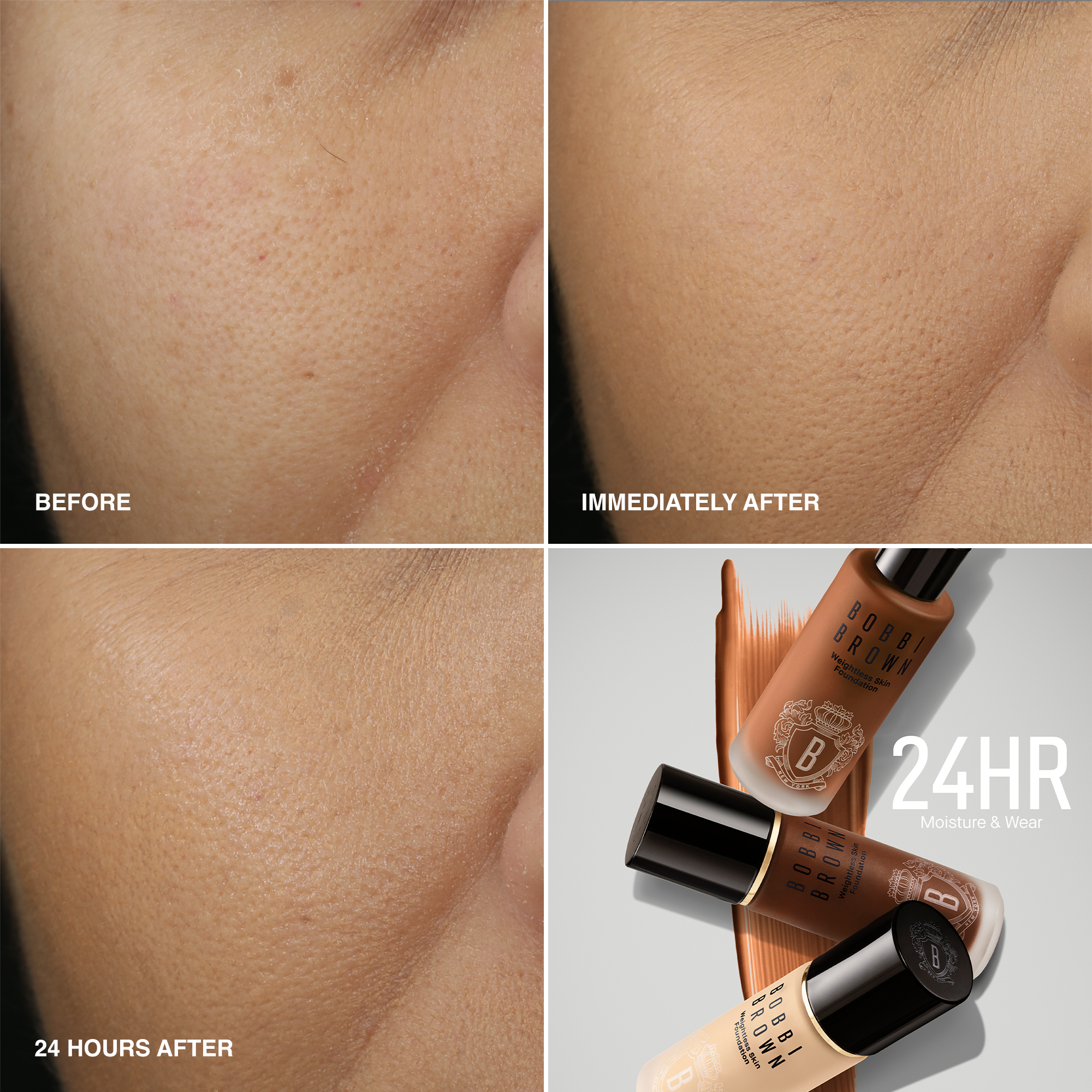 Bobbi Brown's Weightless Skin Foundation with Broad Spectrum SPF 15 delivers 24-hour moisture and 24-hour wear, controls oil all day, and minimizes the look of pores.
