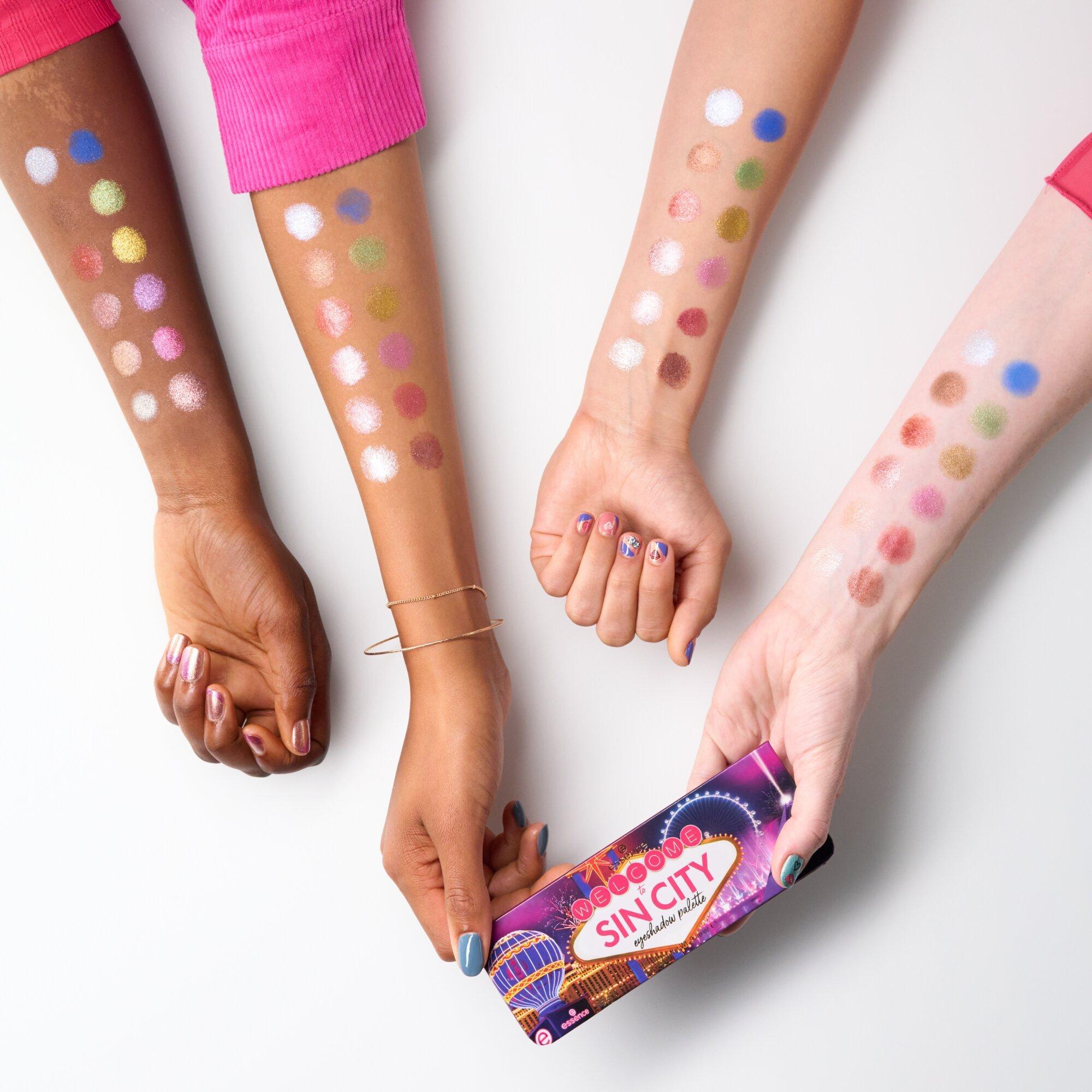 Essence Welcome To Sin City Eyeshadow Palette Features 12 highly-pigmented shades with a range of matte to metallic finishes inspired by Las Vegas!