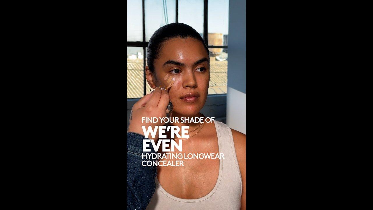 Do less, but get more with We're Even Hydrating Longwear Concealer, the ultimate makeup-meets-skincare hack. It melts into skin, instantly evening, brightening and hiding dark circles + puffiness for up to 12 hours. Available in 50 buildable medium coverage shades with a second-skin finish.