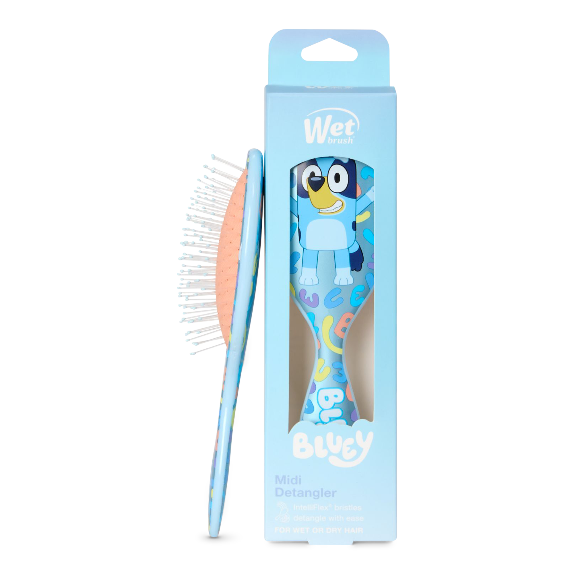 The Wet Brush x Bluey Midi Detangler – Bluey turns hair care into playtime with a colorful design inspired by everyone’s favorite pup. IntelliFlex® bristles detangle pain-free while reducing breakage for smooth, healthy hair. Perfect for kids or travel-friendly styling.