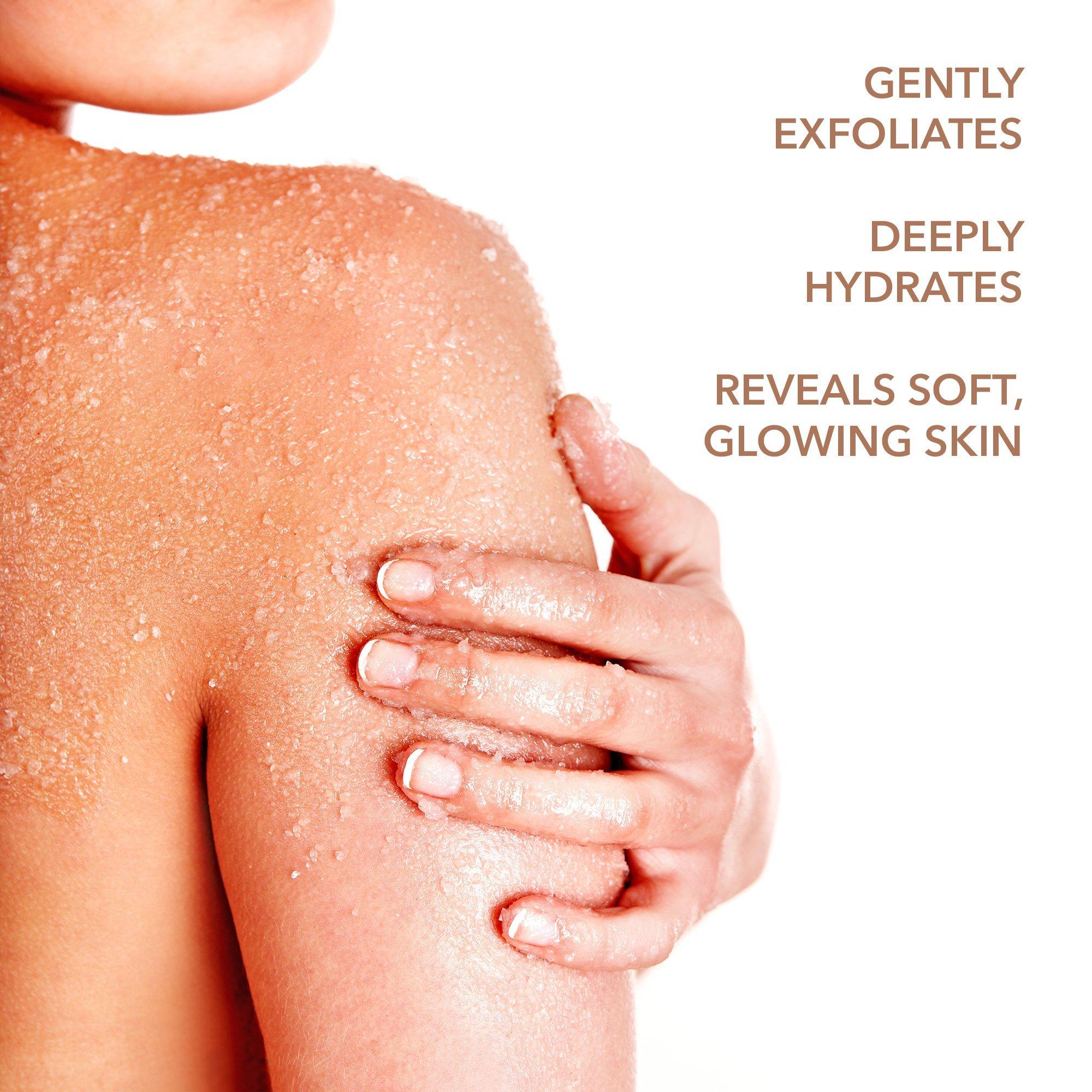 Apply a generous amount onto wet skin. Massage gently in a circular motion, focusing on rough areas. Rinse thoroughly and pat dry.