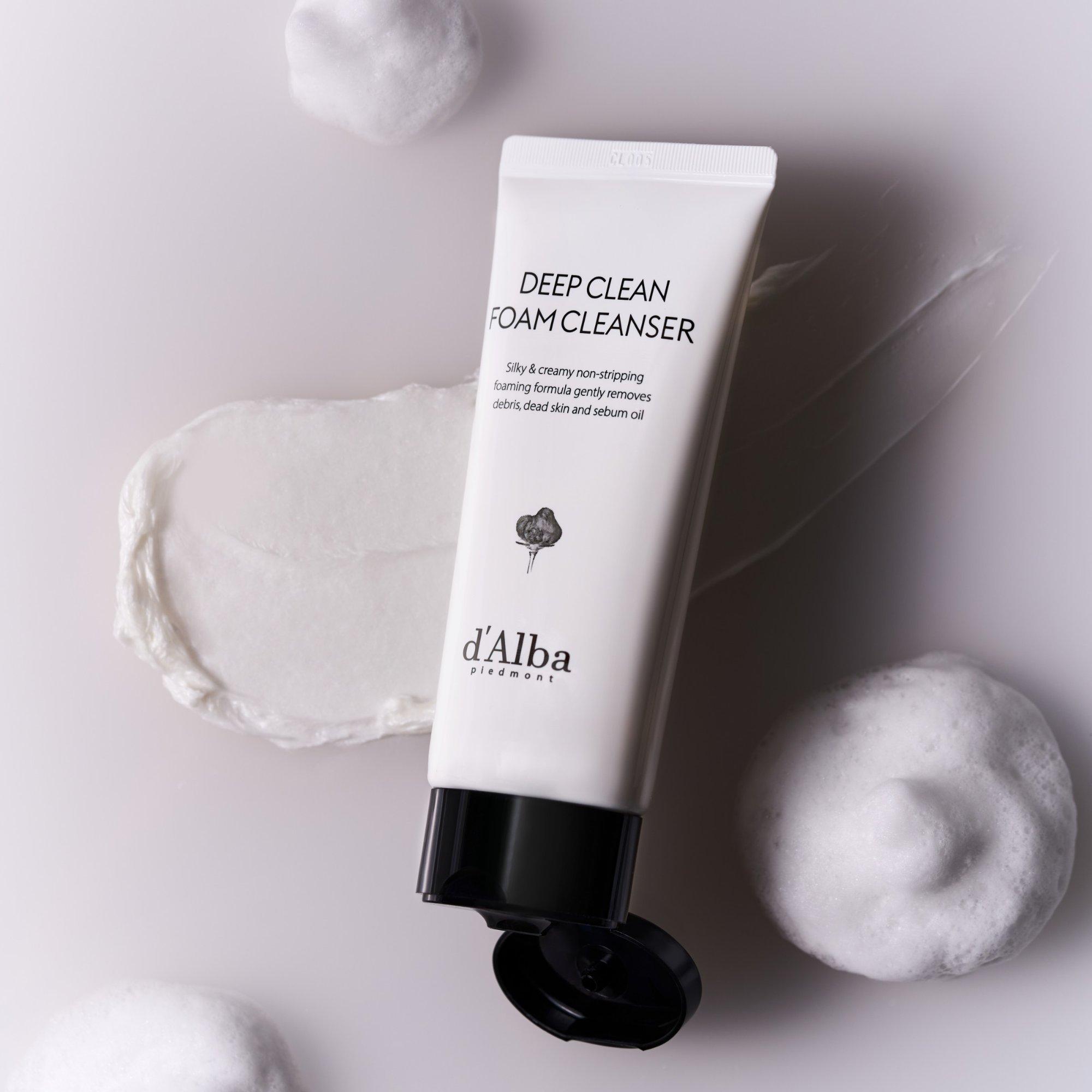d'Alba Piedmont White Truffle Deep Clean Foam Cleanser is a mild, pH-balanced foam with plant-based surfactants to cleanse pores deeply without stripping moisture.