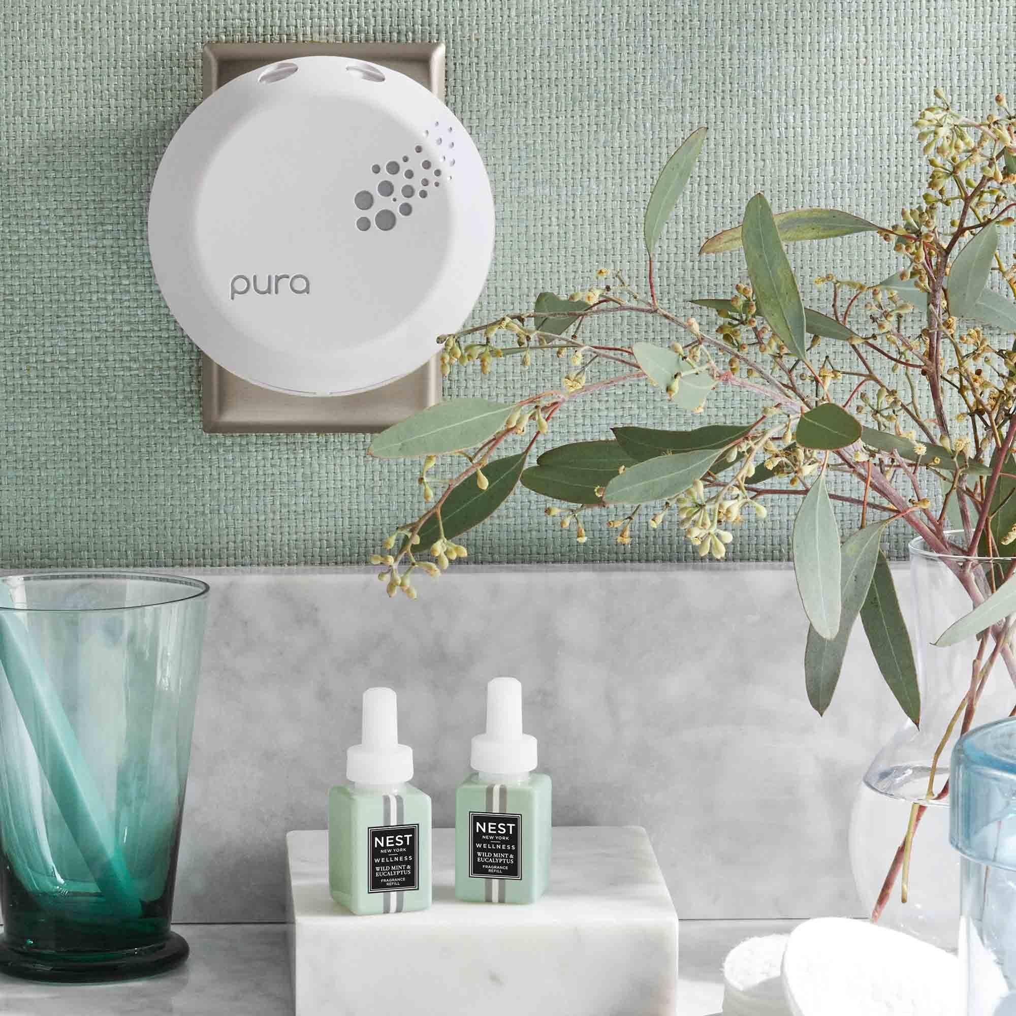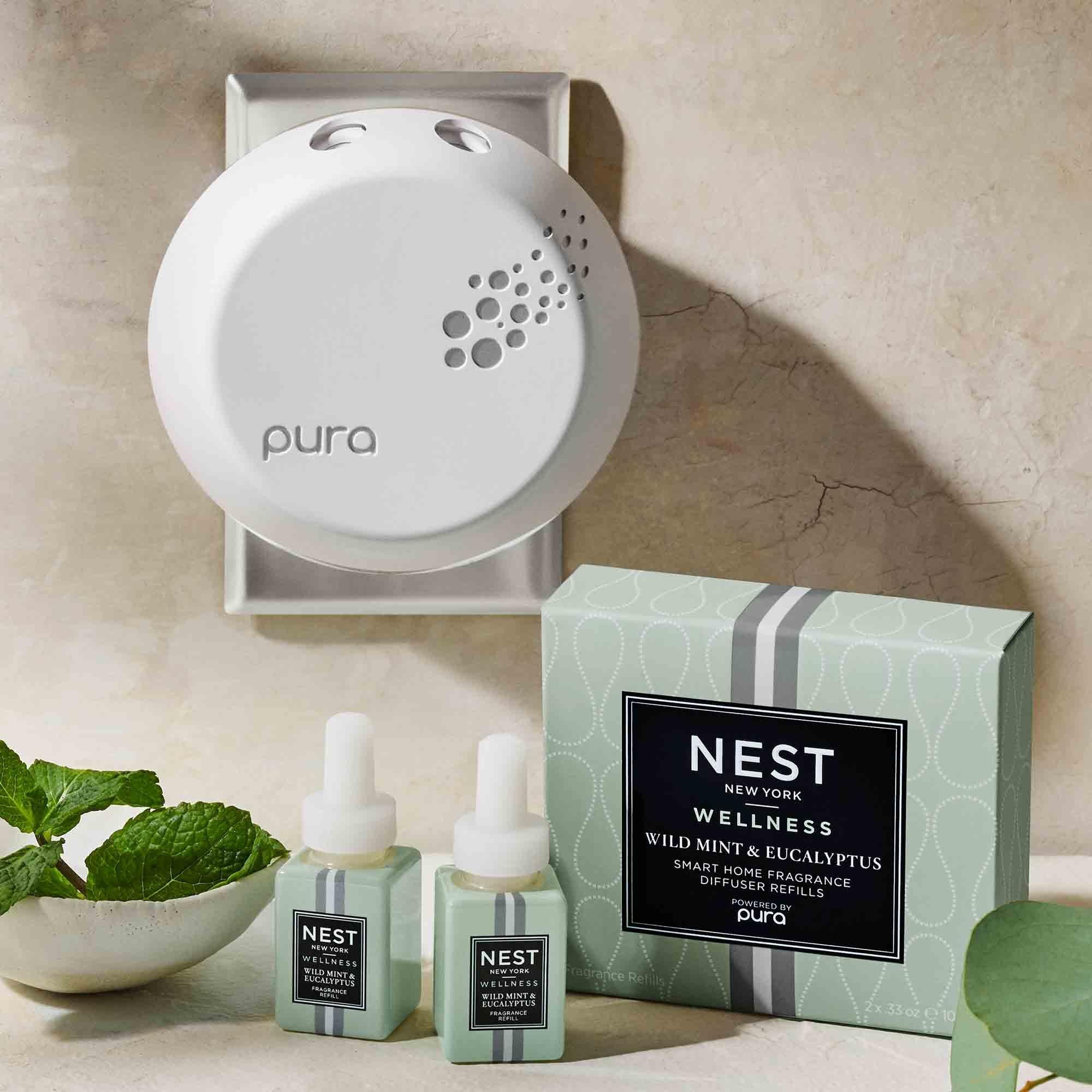 Scent your sanctuary with this NEST x Pura Smart Home Fragrance Diffuser Refill Duo that blends the essence of wild mint and eucalyptus with basil and Thai ginger to clear your mind and awaken your senses.