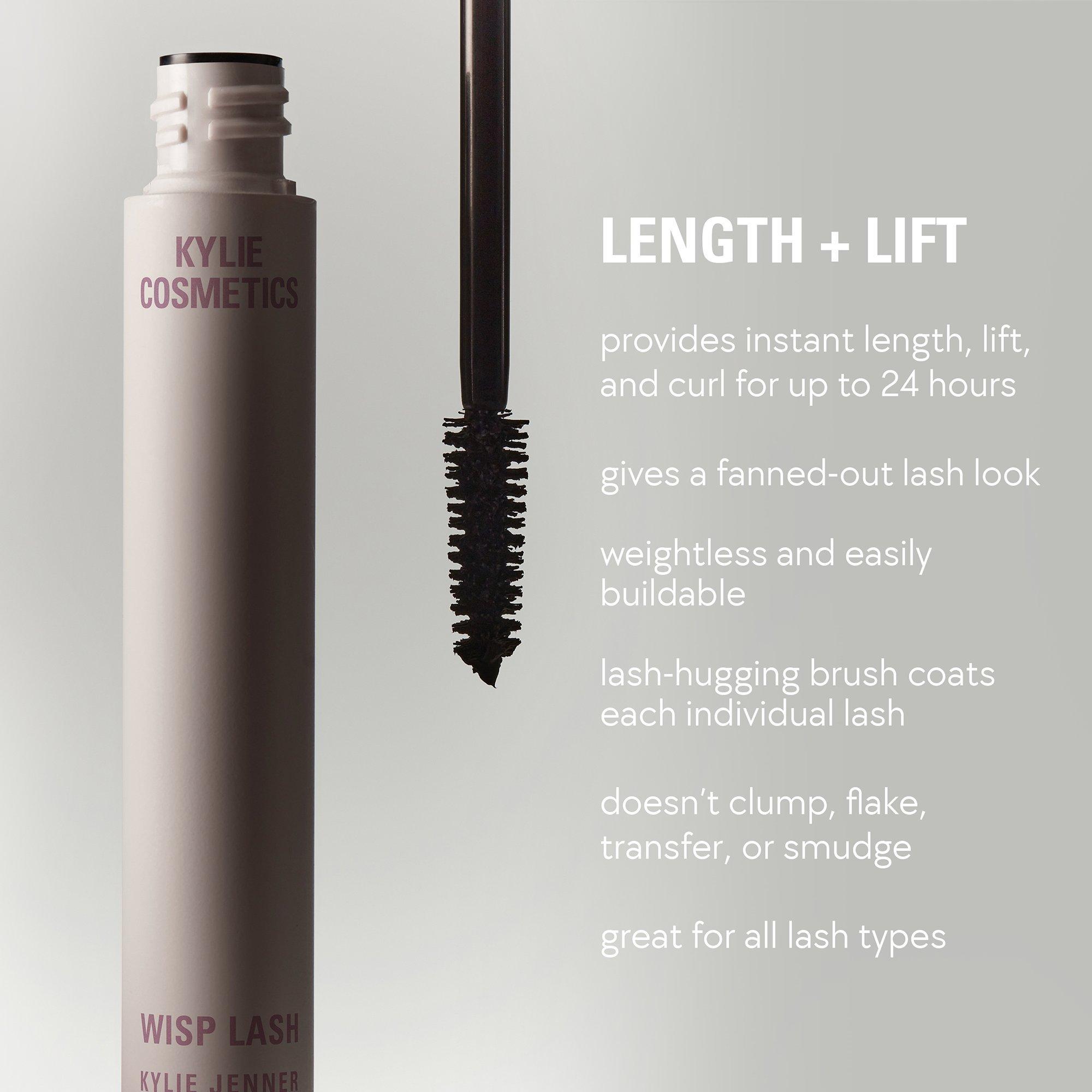 Get long, lifted, and fanned-out lashes with the KYLIE COSMETICS Wisp Lash Mascara. This mascara weightlessly builds, gives ultra-separation, and provides feathery, wispy lashes.