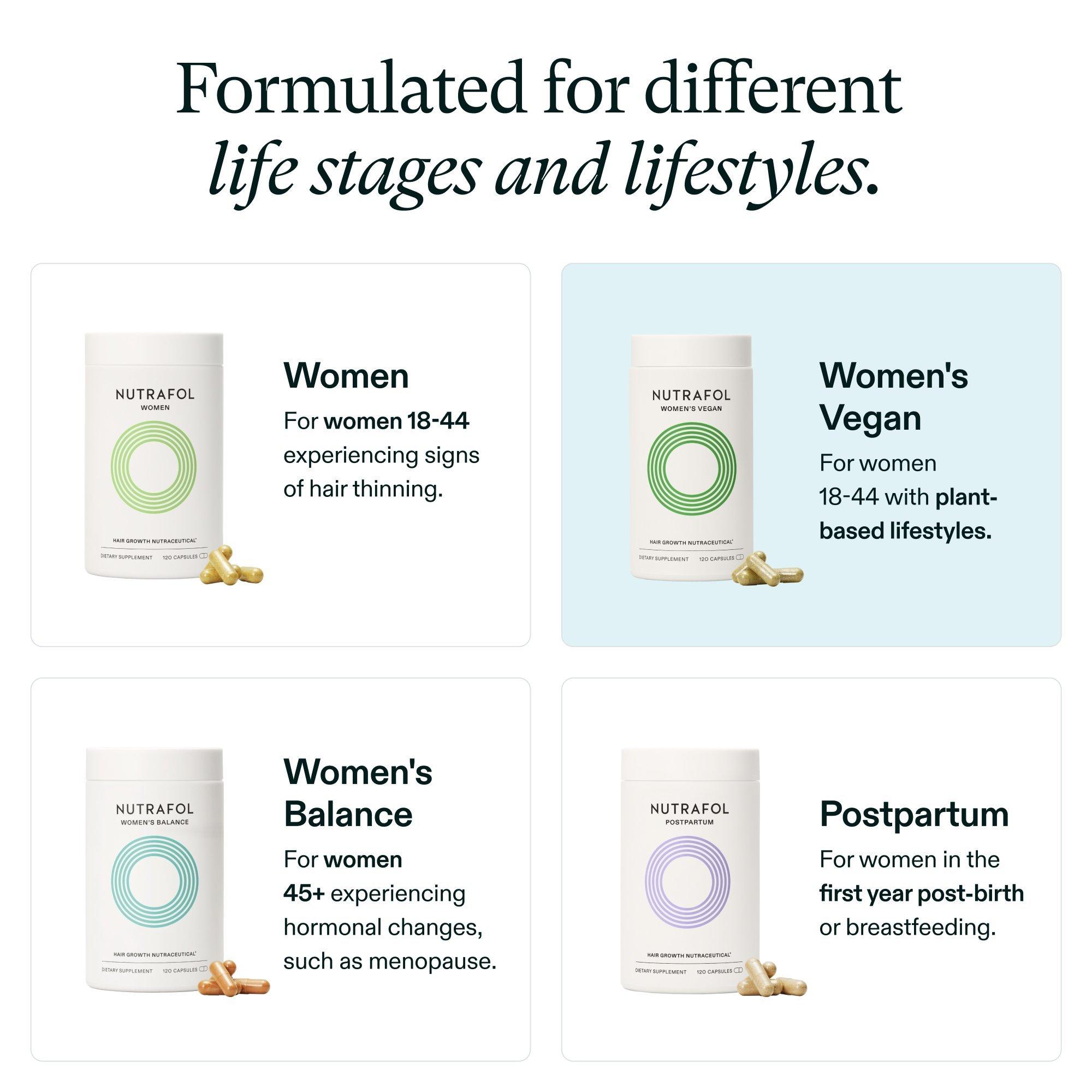 Take a whole-body approach to hair thinning with Nutrafol's daily hair growth supplement, physician-formulated for plant-based lifestyles. Clinically tested formula has 100% vegan vitamins, minerals, and natural ingredients support visibly thicker, stronger, faster-growing hair in 3-6 months. (1,2)*