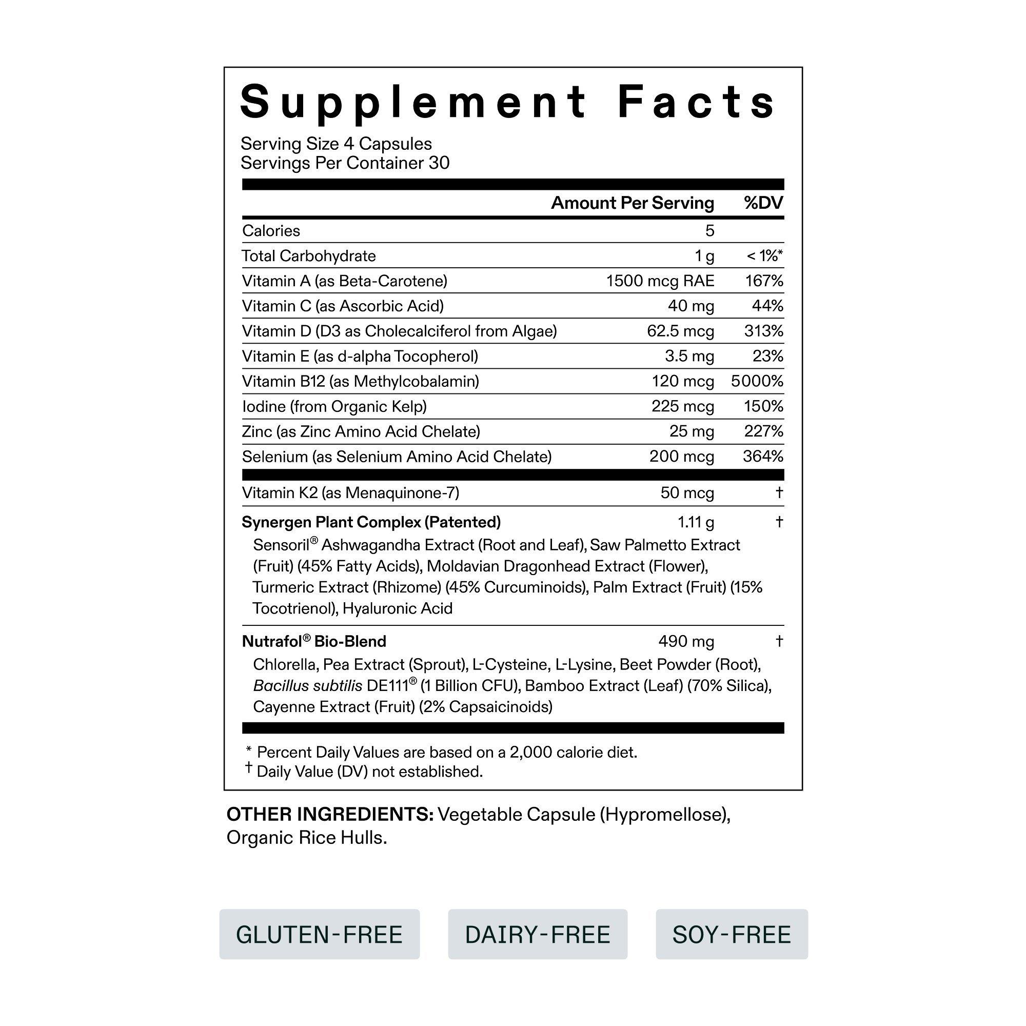 Take four (4) capsules once daily with a meal. For best results, take for a minimum of 3-6 months and beyond. Do not exceed recommended serving. Store in a cool, dry place.