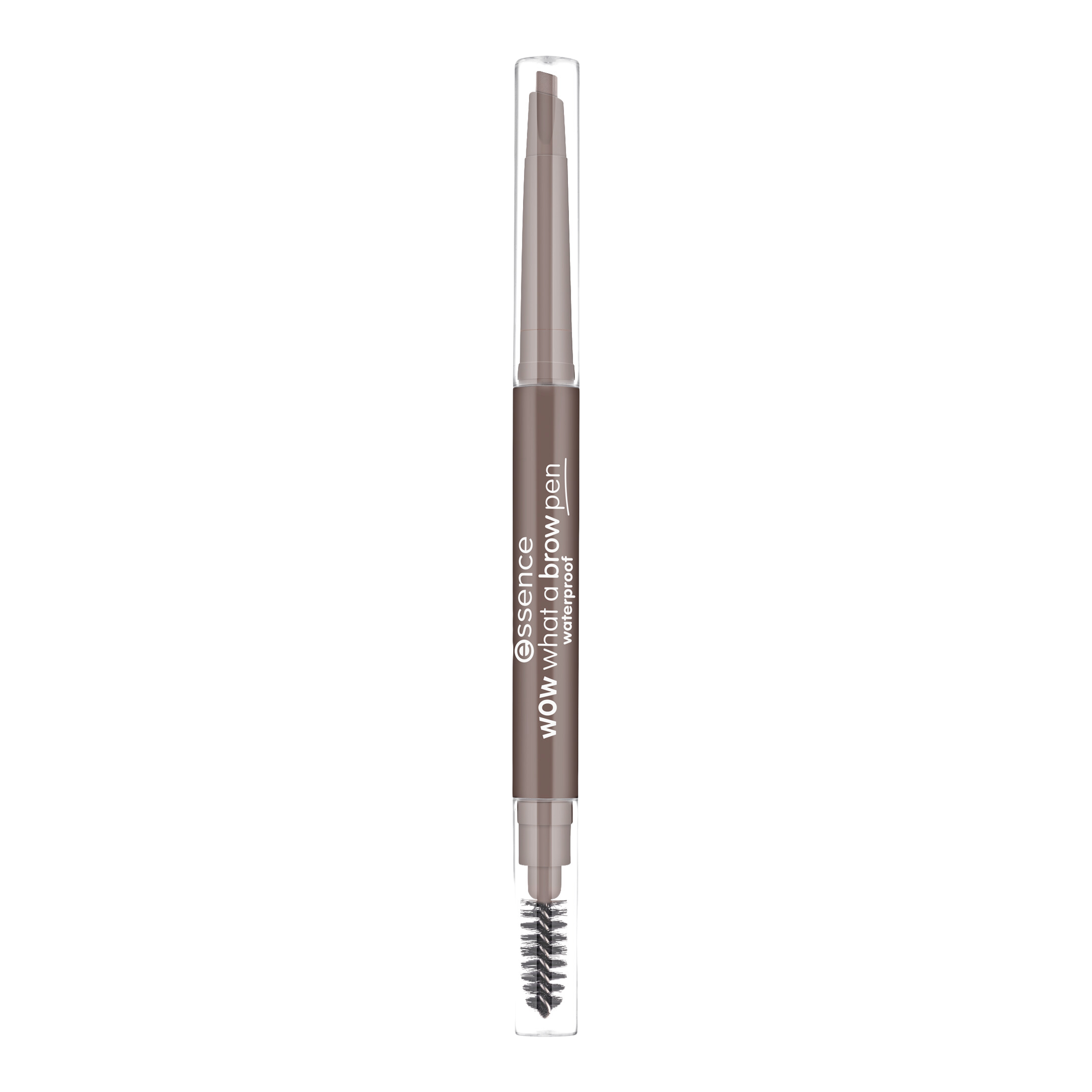 Using essence Wow What A Brow Pen Waterproof, brush brow hair up vertically with the spoolie end. Using the product end, fill in any gaps or sparse areas until desired look is achieved. Brush out brows once more using spoolie end. Pair with essence Lash Brow Gel Mascara or essence Fix It Like A Boss Transparent Brow Fixing Gel to set brows in place.