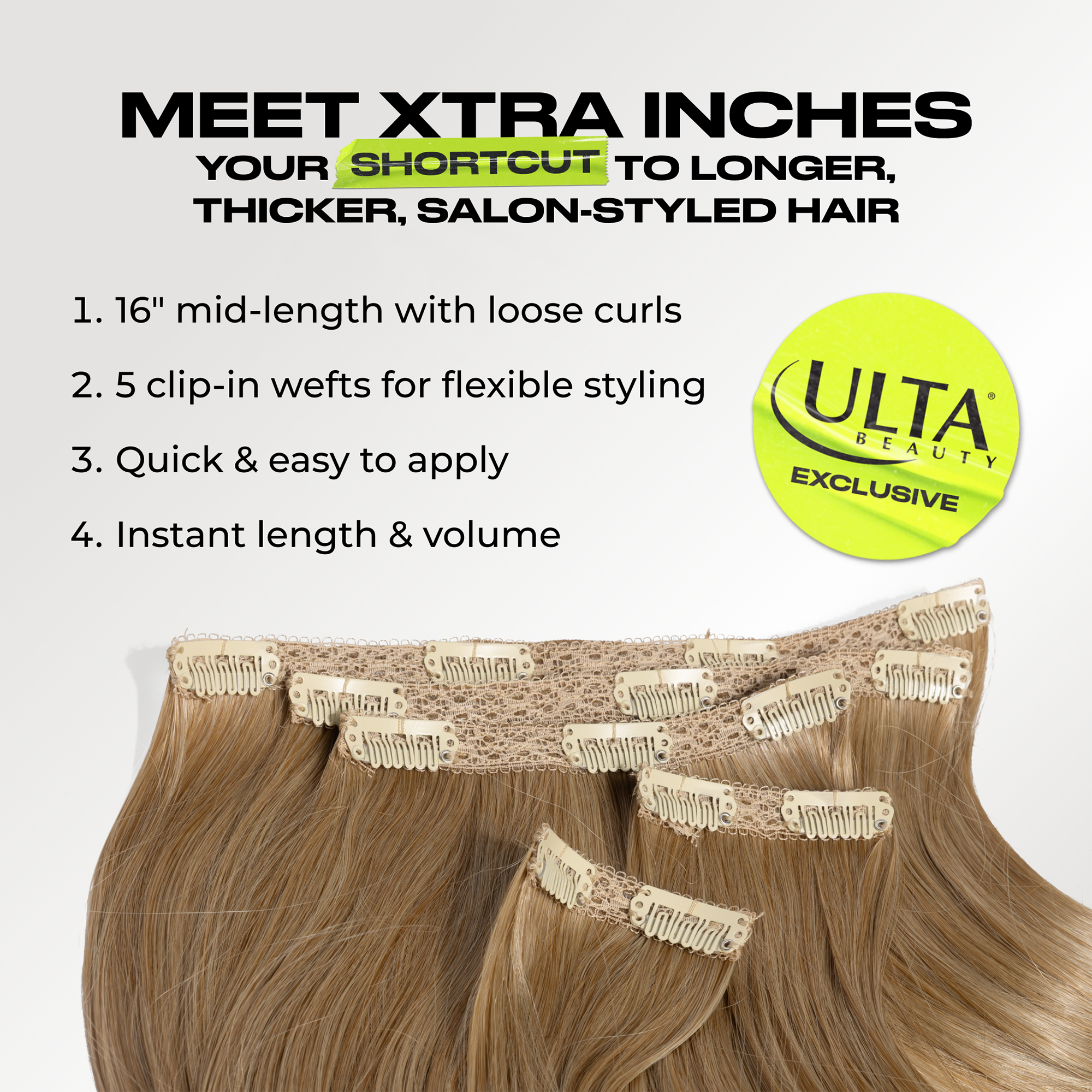 Get effortless waves with Xtra Inches Clip-in Extentions. At 16", INH Ulta-exclusive clip-in hair extensions include 5 wefts with loose curls for instant blowout volume.
