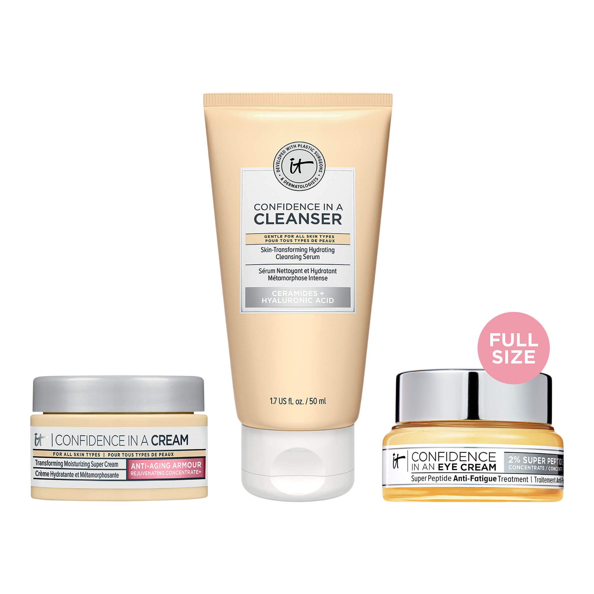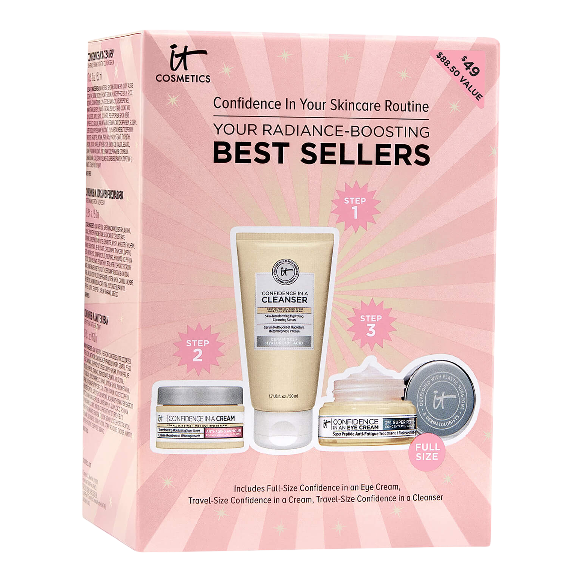 Celebrate confidence in your skincare routine every day (and night!) with this IT Cosmetics 3-piece Your Radiance Boosting Best Sellers Skincare Gift Set including a full-size smoothing eye cream, plus travel sizes of the best-selling hydrating anti-aging cream and face cleanser.
