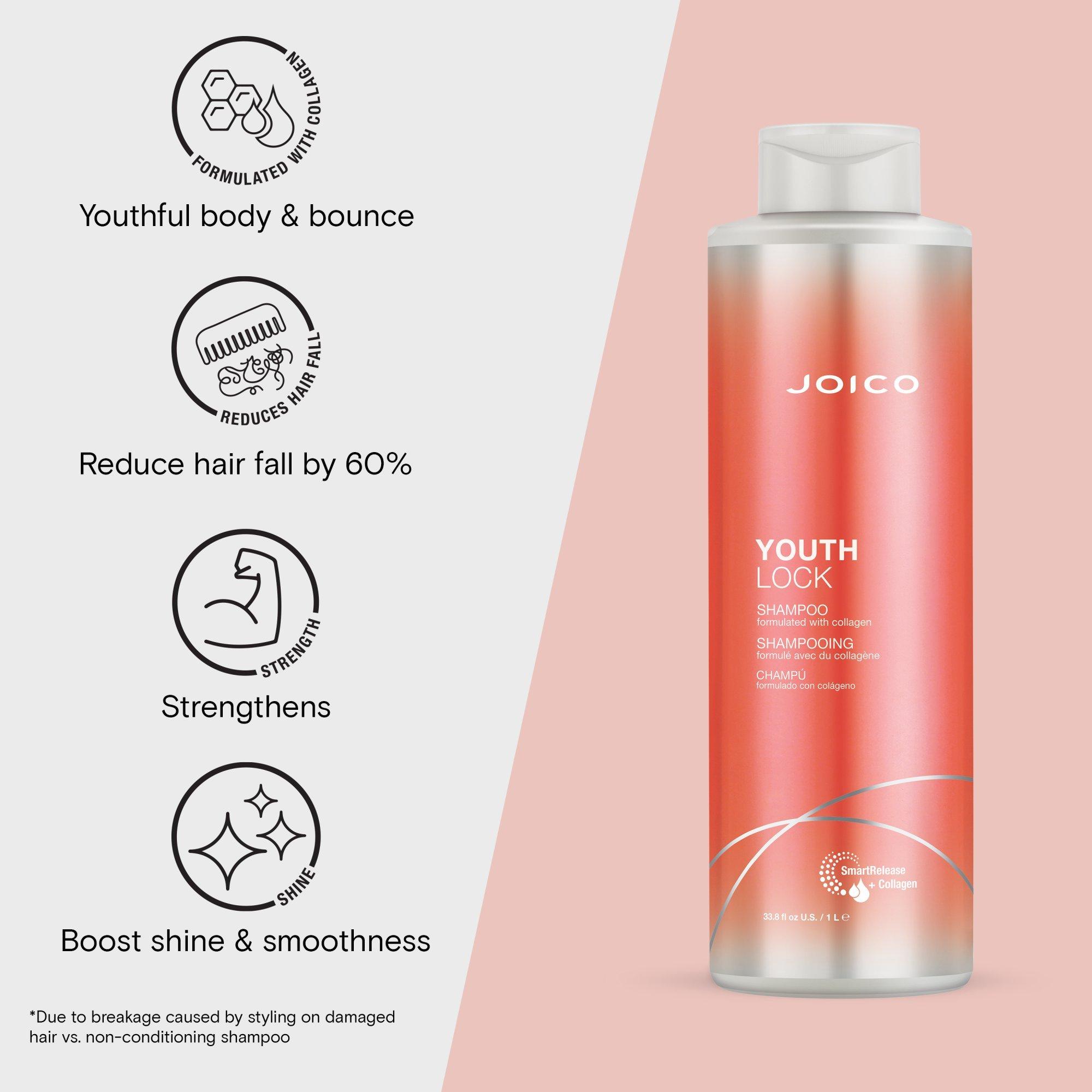 Joico YouthLock Shampoo delivers ageless body, shine, manageability, and bounce to hair that needs a revitalizing comeback. Cleansing with powerful collagen and nourishing Buriti fruit oil, hair gets a second chance in the spotlight.