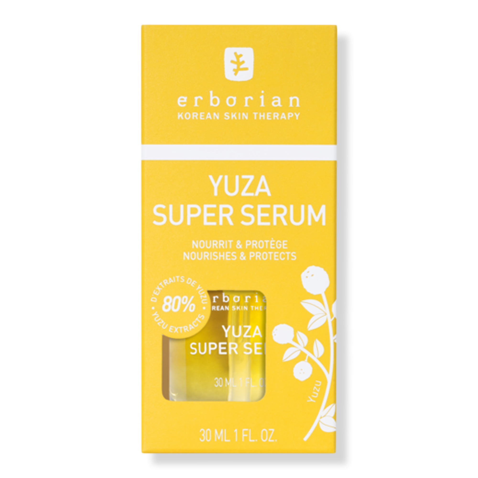 Enriched in vitamin C, known for its antioxidant properties, Yuza Super Serum by Erborian acts as a nourishing veil for your skin. Formulated in an ultra-light texture similar to freshly squeezed Yuzu juice, this serum nourishes and protects the skin.