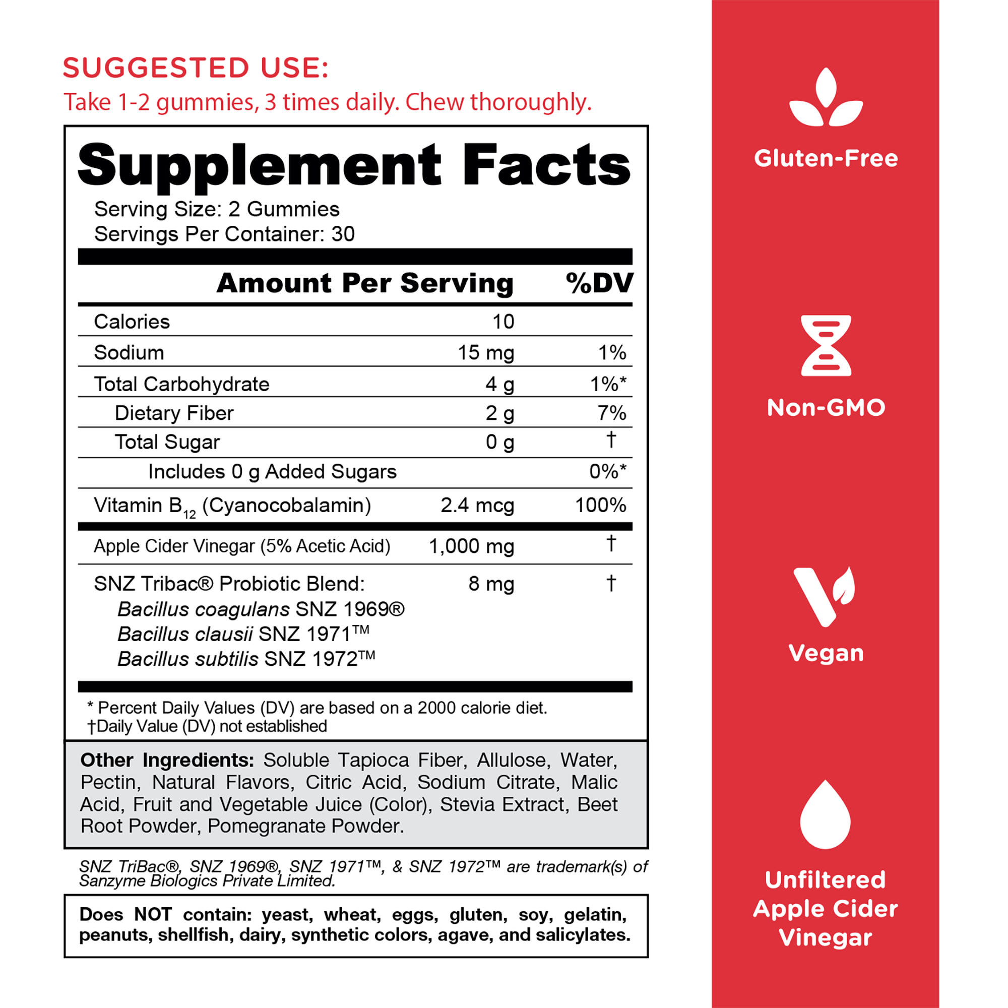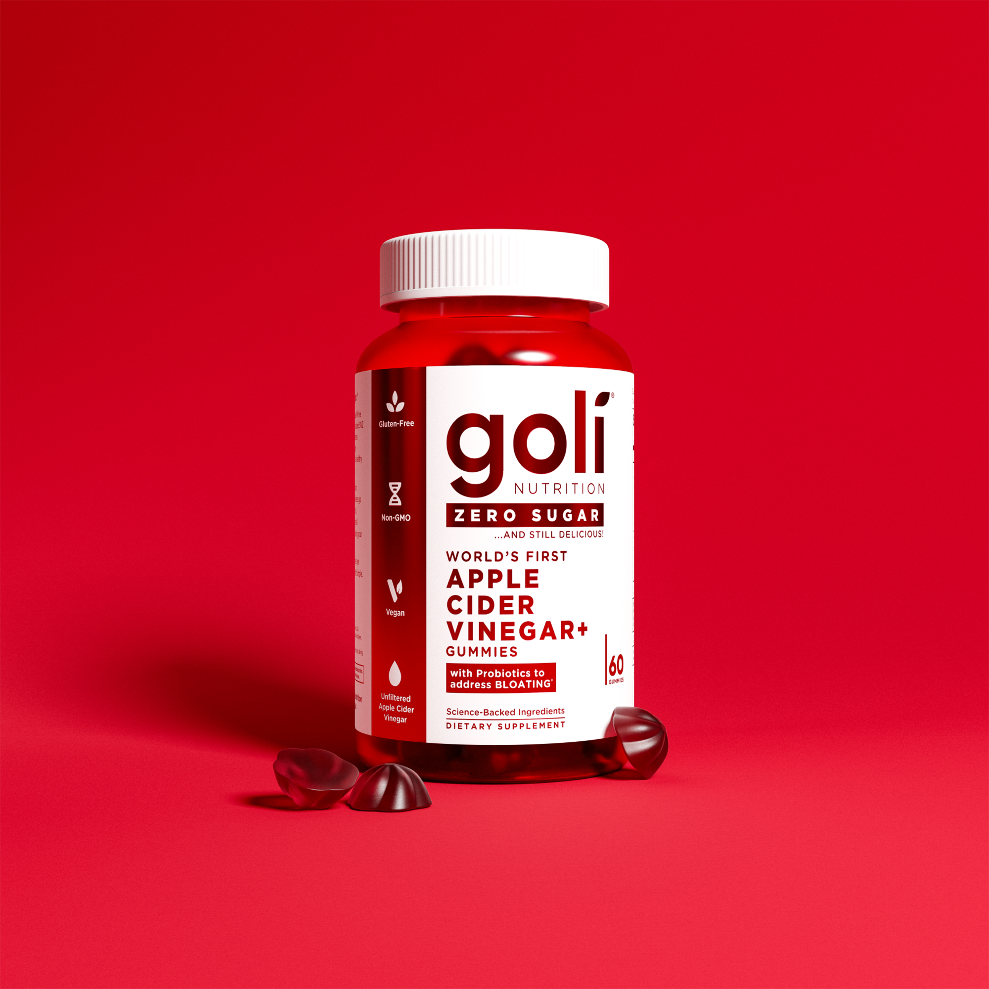 Goli Nutrition's flagship product, Apple Cider Vinegar+ Gummies, now formulated with Zero Sugar! They've elevated this customer favorite by adding clinically studied SNZ Tribac® probiotic blend.