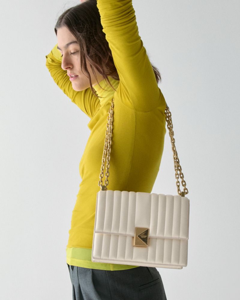 Perennially chic with luxe finishing touches, our Deco collection features elevated staples for both everyday and special occasions. This shoulder bag with a chain strap is made from quilted leather and adorned with our signature K hardware, inspired by Art Deco style.