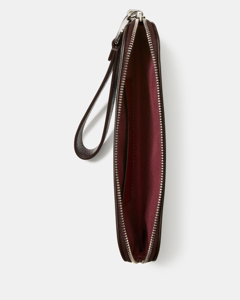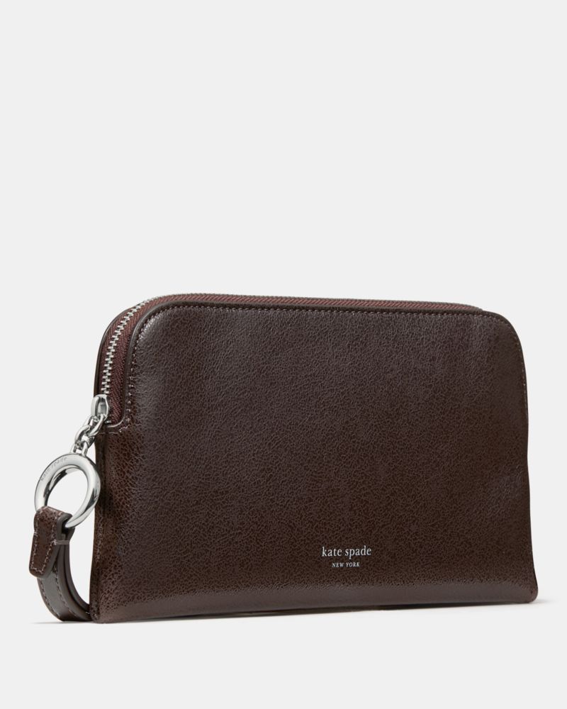 Our Halo collection is named for its unique ring-shaped hardware—an archival detail that dates back to Kate and Andy Spade's early days in business. This sleek wristlet in glossy glazed leather is a perfect complement.