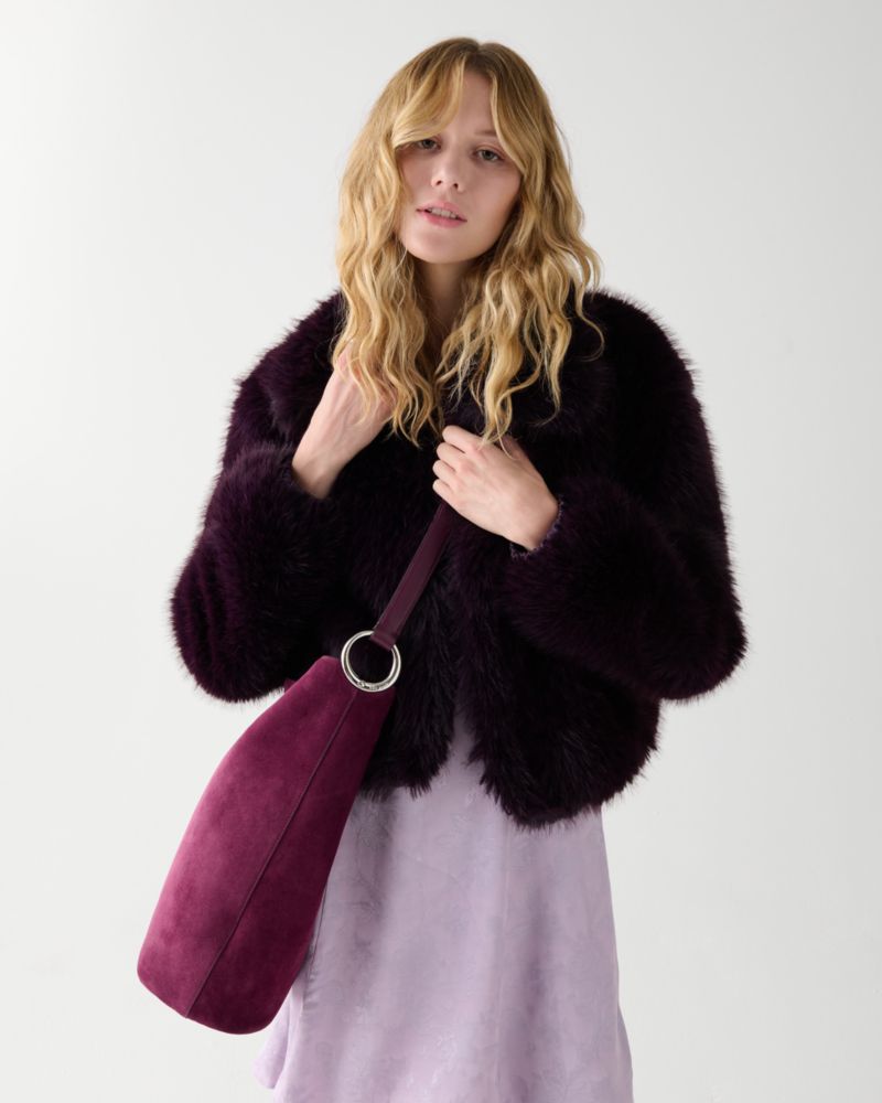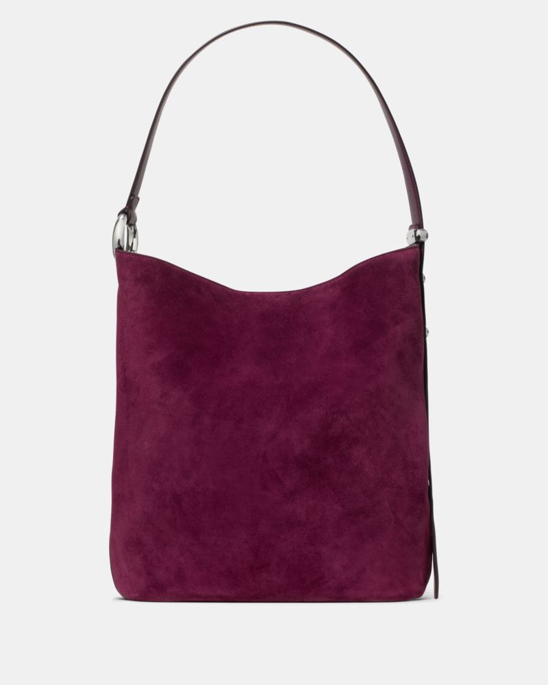Our Halo collection is named for its unique ring-shaped hardware—an archival detail that dates back to Kate and Andy Spade's early days in business. This large suede bucket bag features an adjustable strap, allowing you to go from crossbody to your shoulder in a snap.