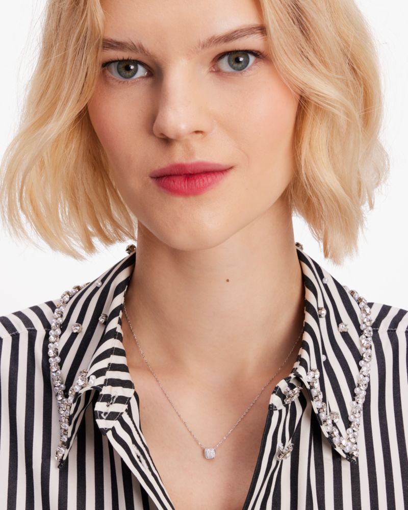 Introducing kate spade Fine, our new collection of gold vermeil and sterling silver jewelry. These special pieces were designed to celebrate both milestone achievements and the little joys in everyday life. This precious pendant, made from sterling silver, features lab-grown pavé diamonds for a shimmering finish.