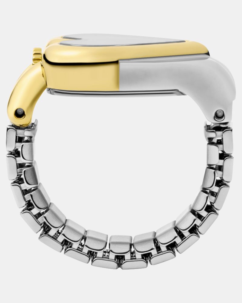 A pretty heart-shaped ring...or a sneakily practical timepiece? Our mixed-metal Monroe ring watch does it all.