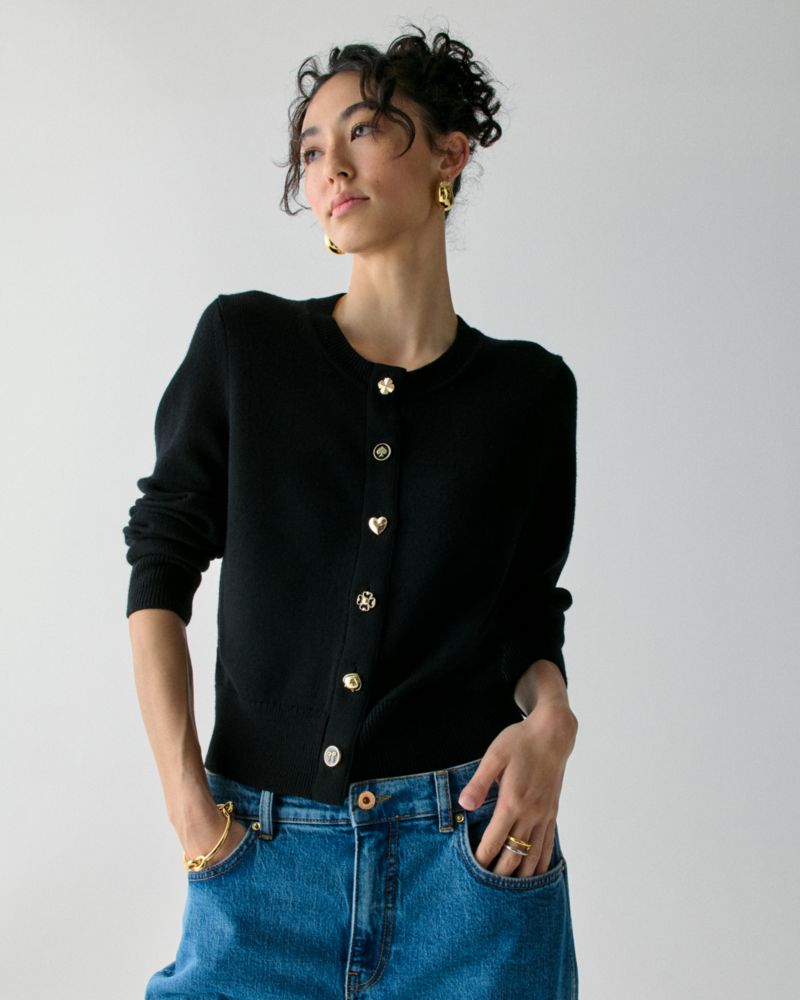 A classically chic (and super-soft) cardi with a Kate Spade New York twist: a fun mix of novelty buttons.