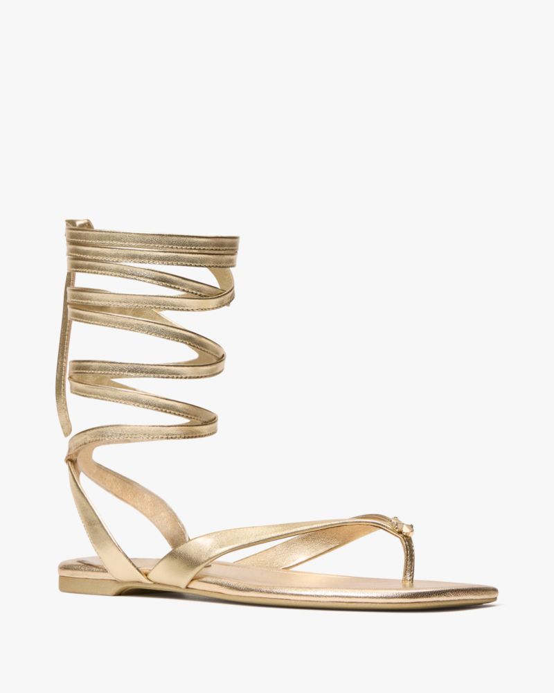 Crafted from smooth metallic leather, these statement-making gladiator sandals are detailed with our signature Spade Flower motif.
