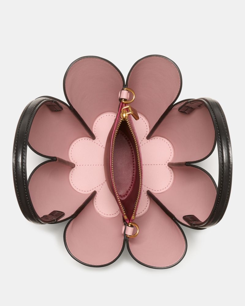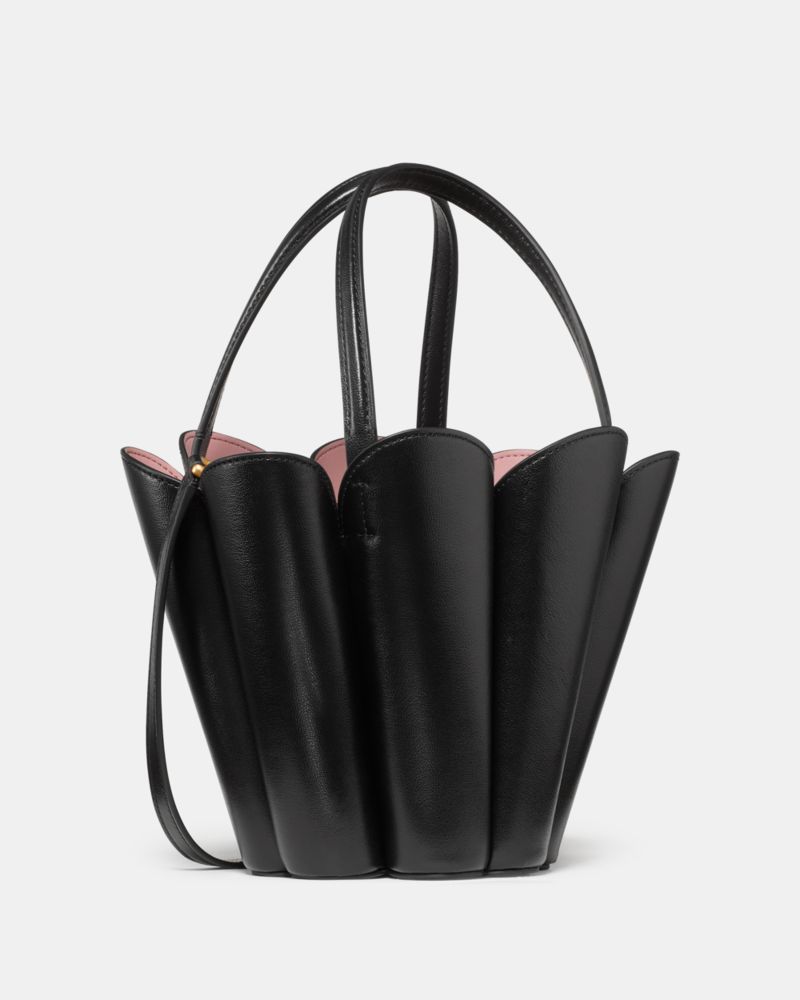 Inspired by the shape of our iconic logo, meet the Spade Flower Bucket Bag. Done in super-sleek fine grain leather, this structured piece comes with an optional crossbody strap. Our favorite part? The hidden stitched spade flower you can find on the bottom.